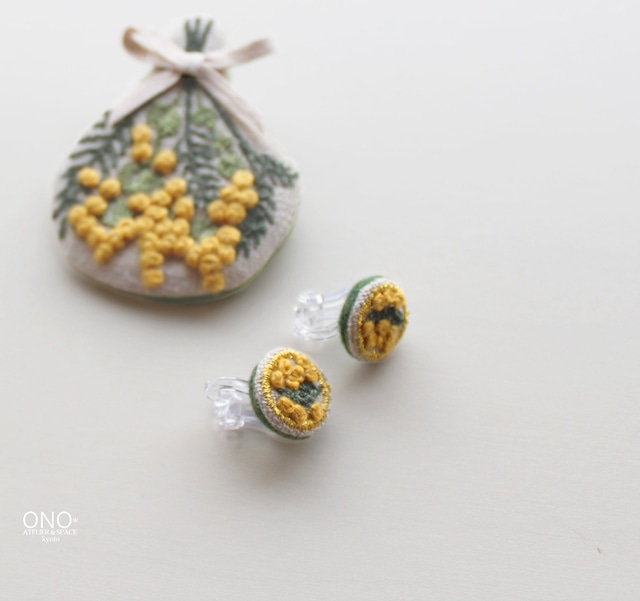 jumelle 小さなミモザ刺繍イヤリング