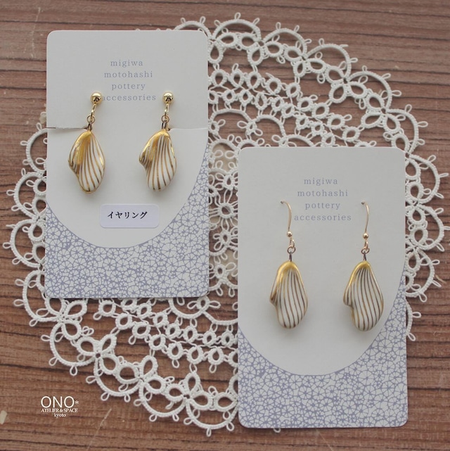 元橋みぎわ 陶イヤリング・ピアス 鳥白金彩