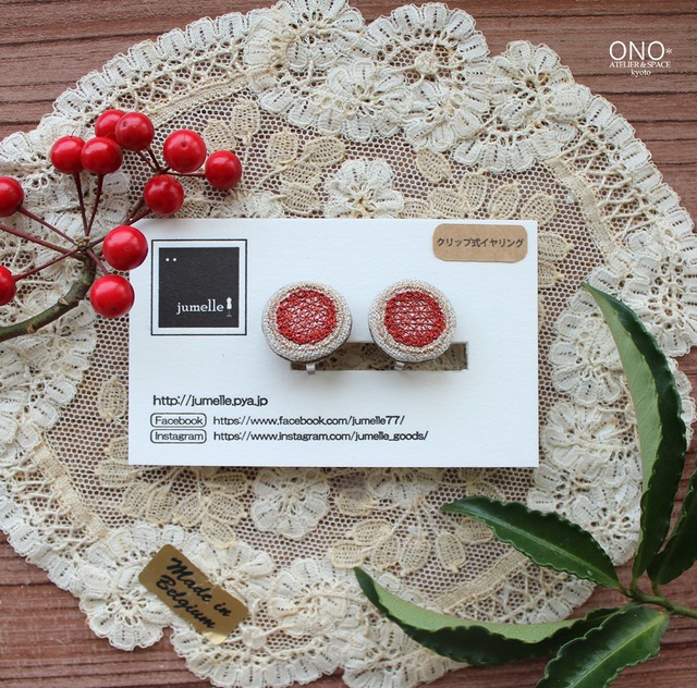 jumelle 幾何学刺繍イヤリング(レッド)