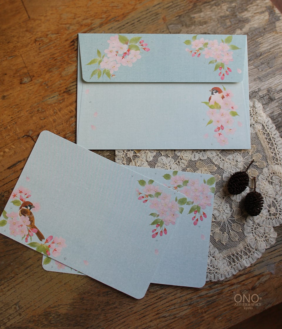 桜に雀 Giftセット(チーフ&ミニレターセット)