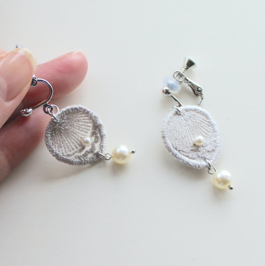 jumelle オーガンジー刺繍Petal イヤリング・ピアス ベージュグレー