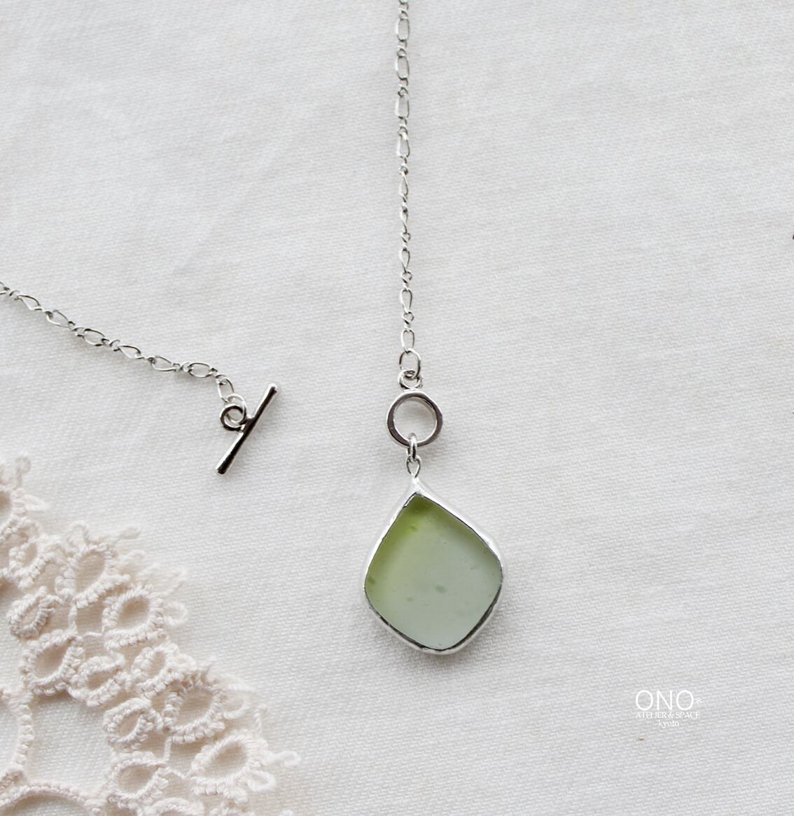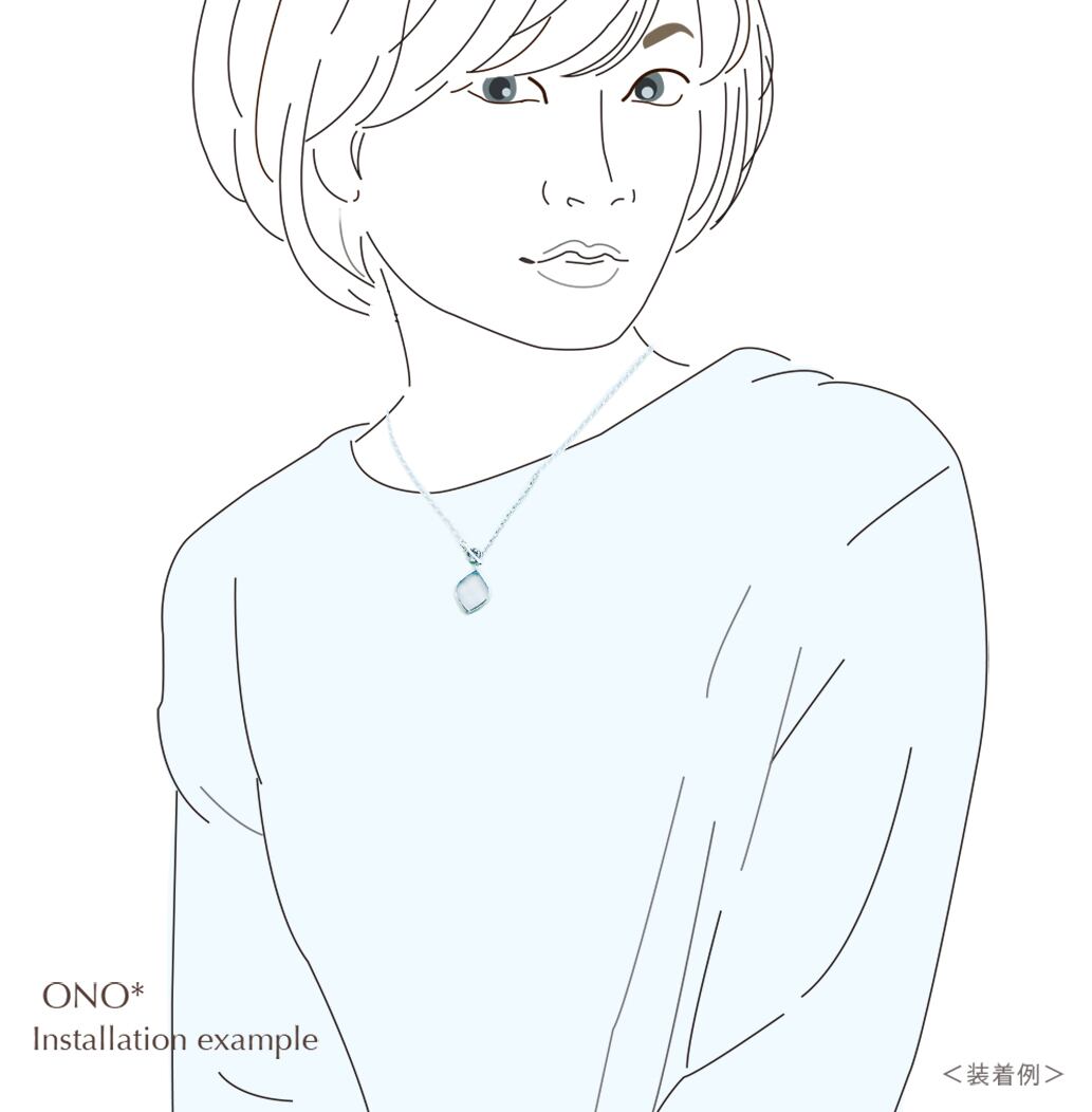 胸元で着けられる手軽さと、首周りの余計な金具の無いスッキリしたデザインが魅力。