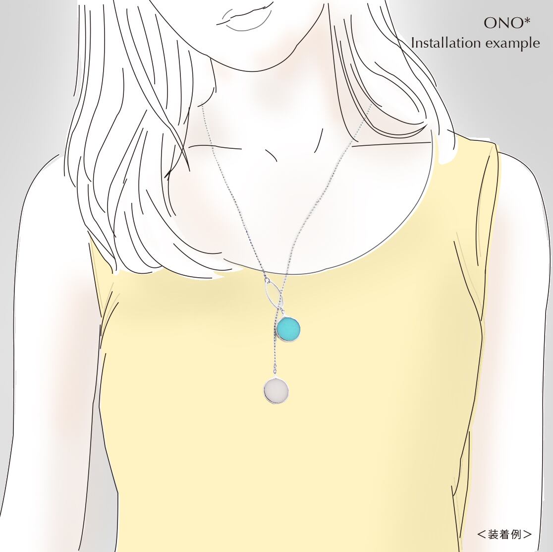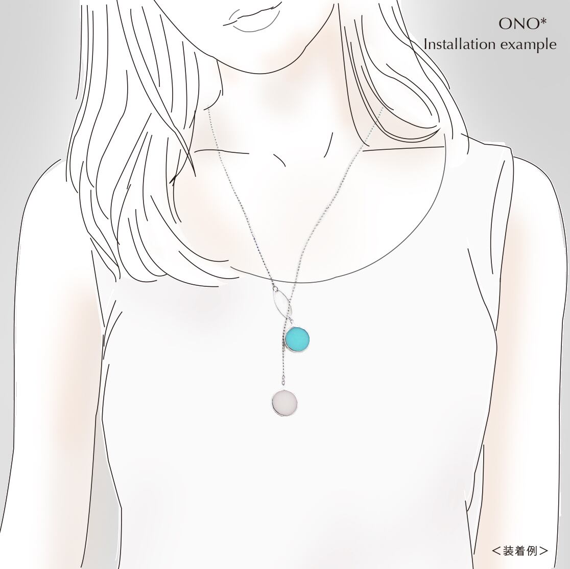 首にかけ胸元で、オーバル形の装飾リングに ピンクのガラストップを通して装着します。前で合わせる楽ちんな着け方と、モチーフ同士を重ねたり・離したり 有機的な魅力を持ち様々なデザインを楽しむ事ができる ロングネックレスにもプチペンダントとしても使える優れものです☆