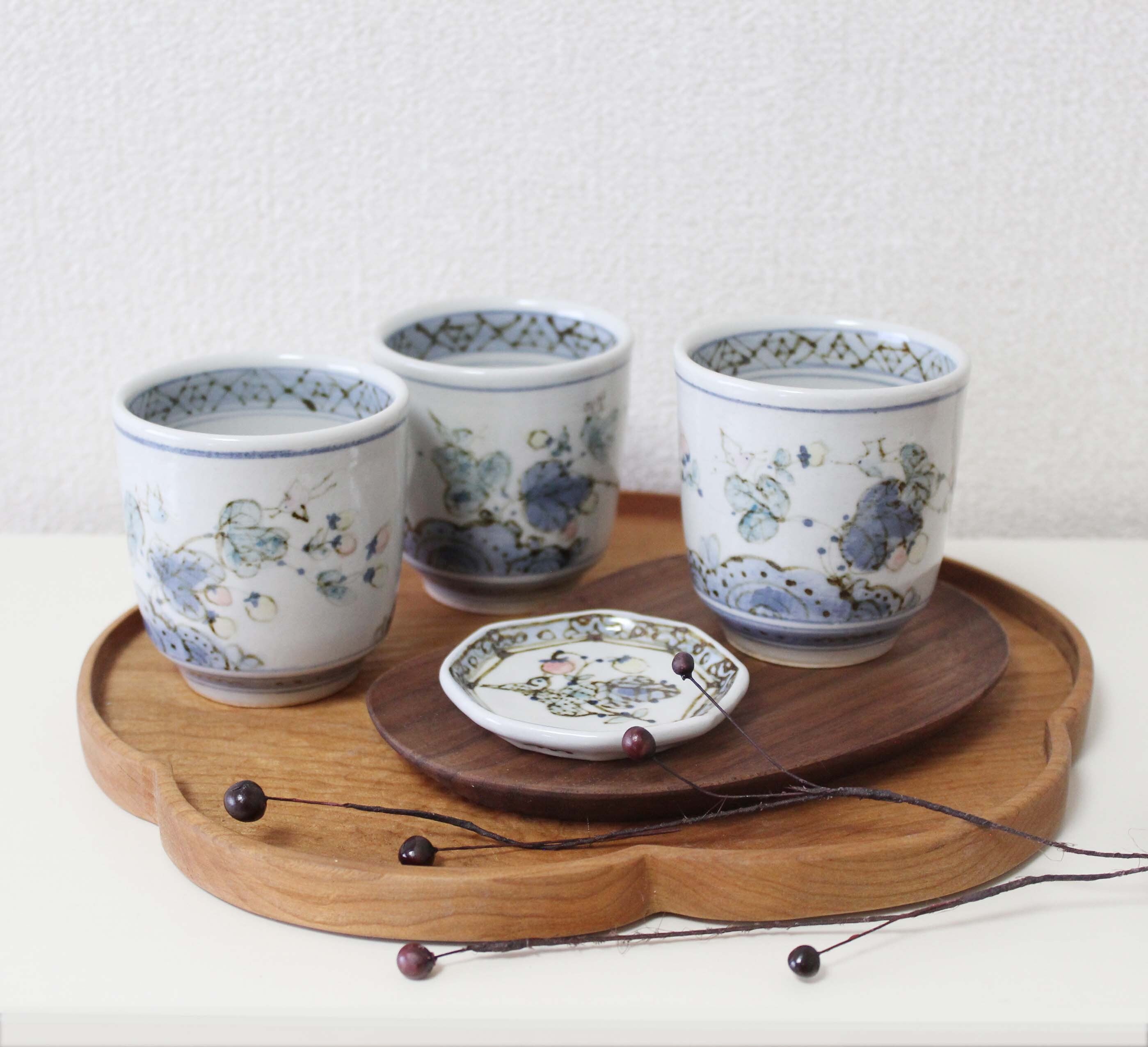 お茶托が4〜5つ並び、ちょうど指のかかるほどよい持ち手の立ち上がり、お茶運びに良いサイズ感です。