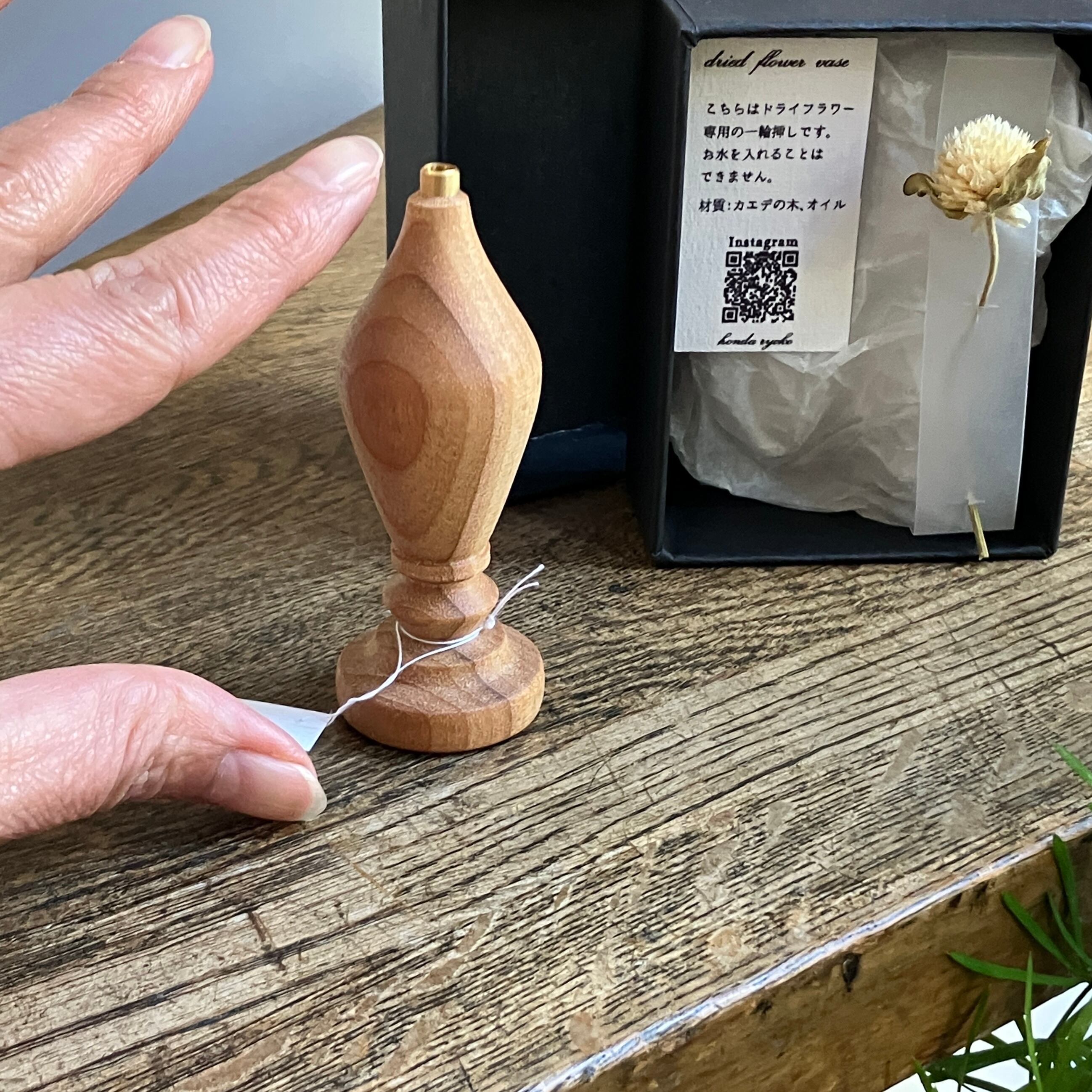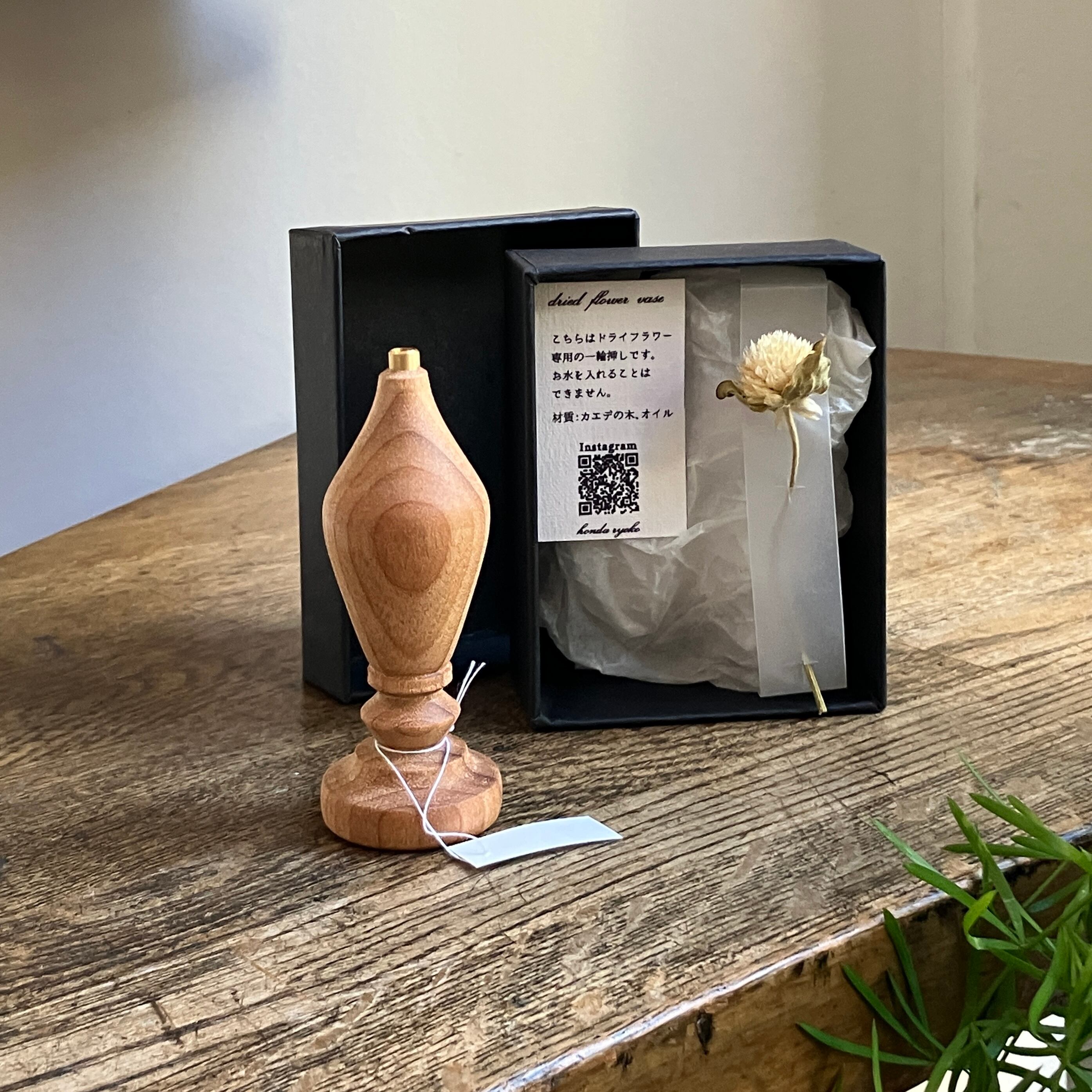 木工作家 本田陵子さんのドライフラワー用の一輪挿し。