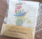 キャンバス地にコラージュ作品がプリントされたトートバッグです