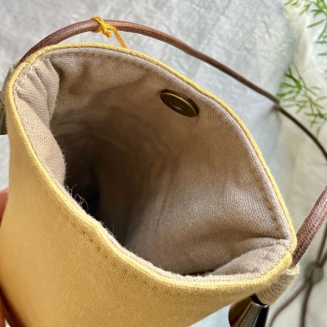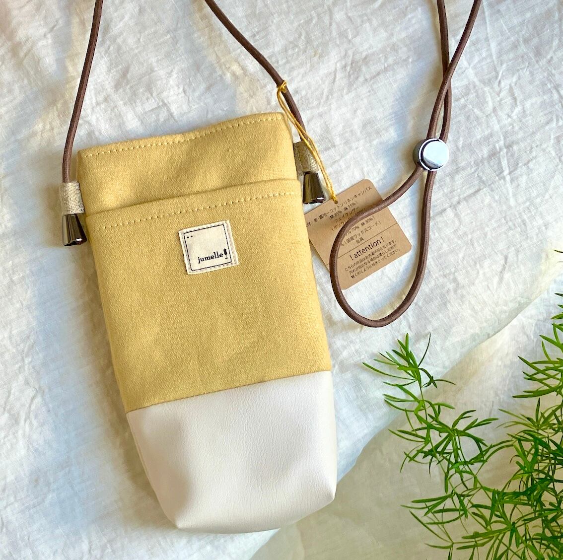 バッグや小物を作るハンドメイド作家 jumelle の スマートフォンがすっぽり入るショルダーポーチ。春の新作です。