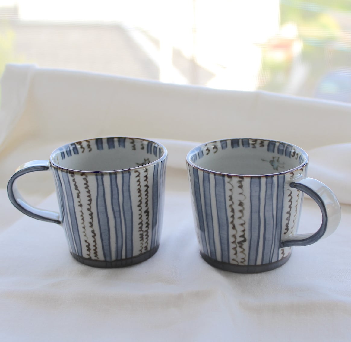 1本1本描かれたブルーの縦ストライプ模様は、懐かしくもあり