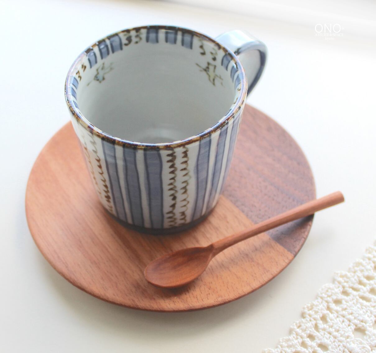 ONO* と honmokko 共同開発 無垢の木で作られたカップ用ソーサーです。