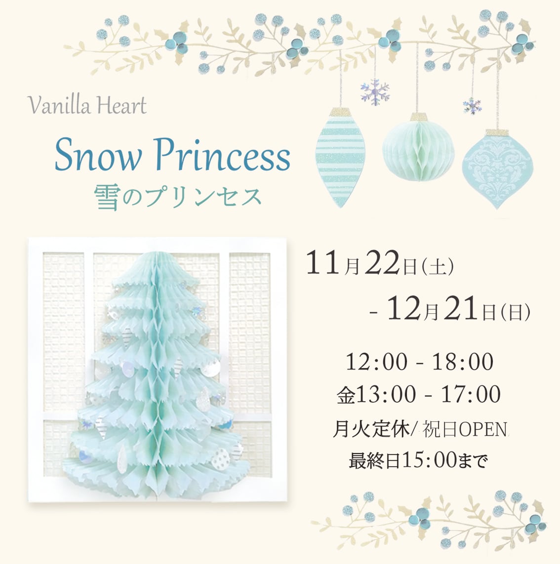 ONO*Spaceにて11月22日〜12月21日開催の『雪のプリンセス』展 ご提供作品。
