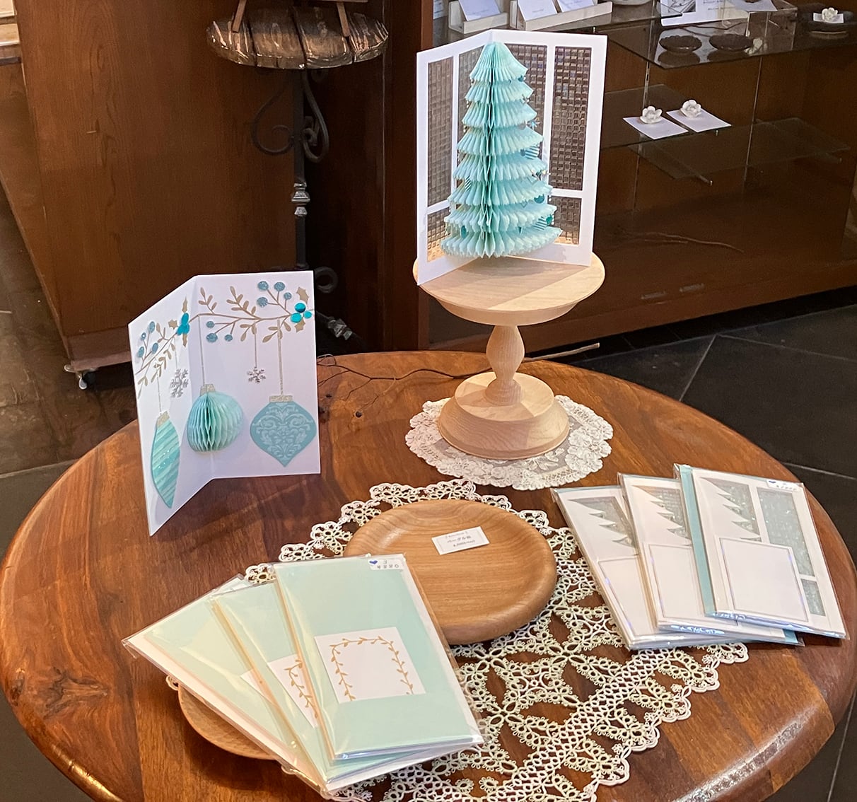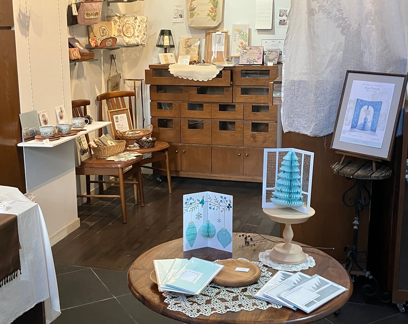 「今回の展覧会テーマ 雪のプリンセスから連想したクリスマスの様子をカードにしました」