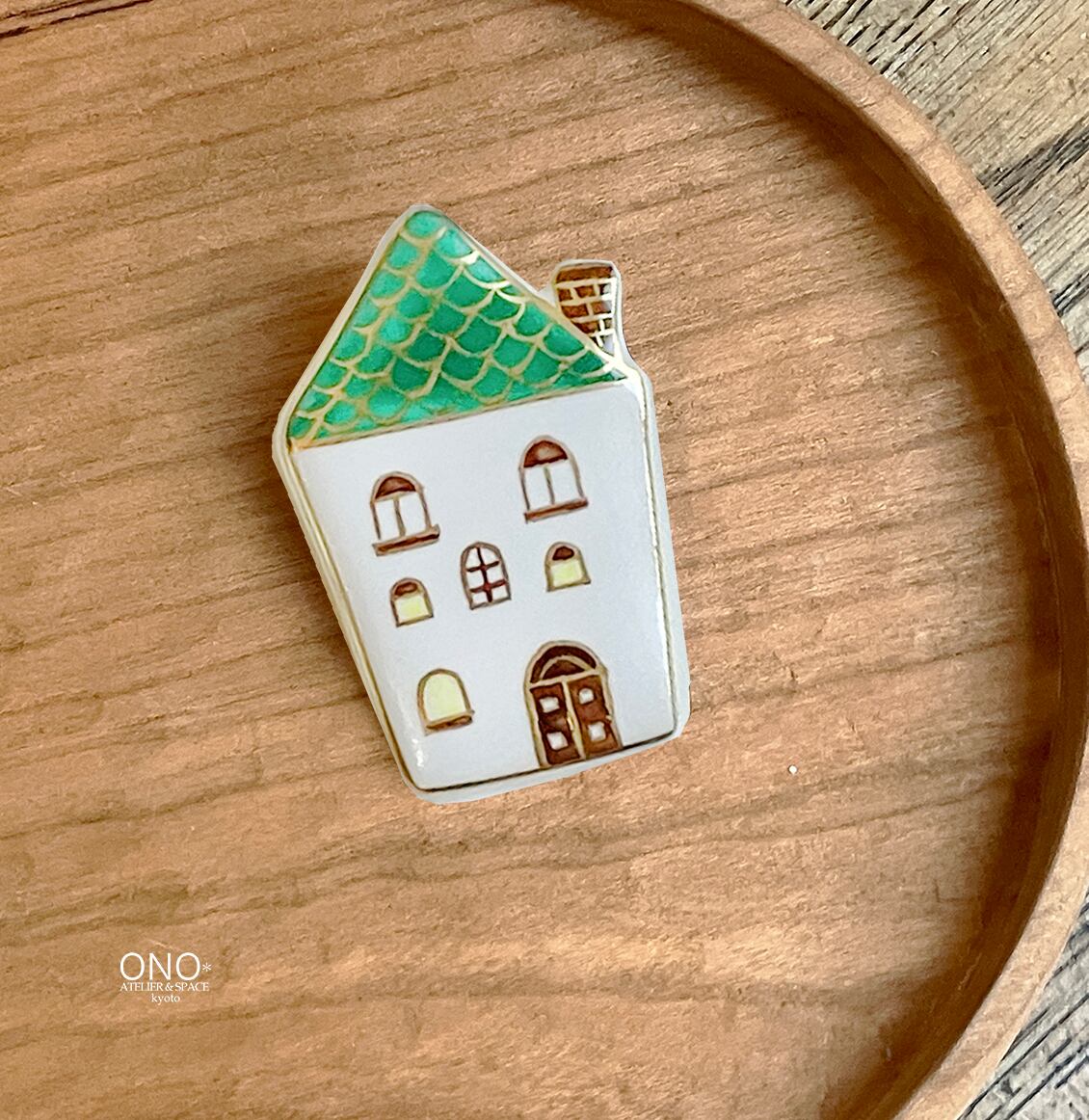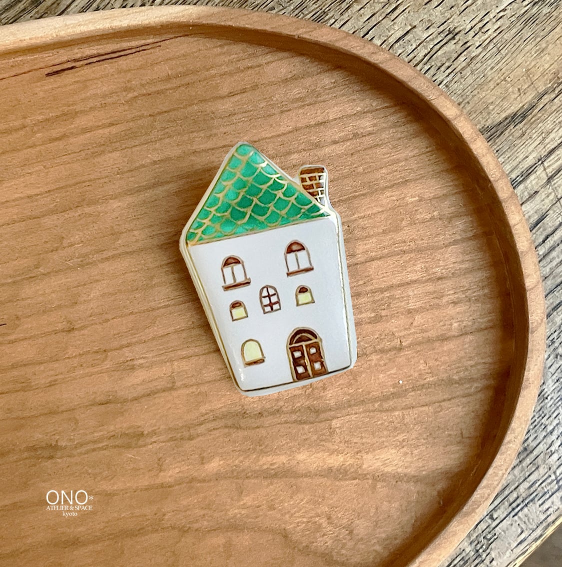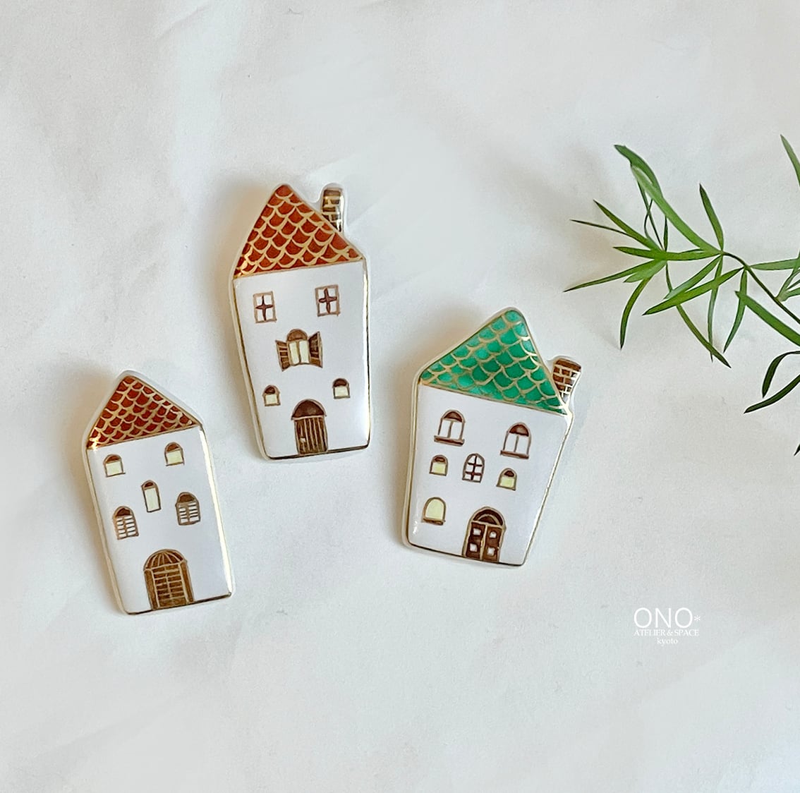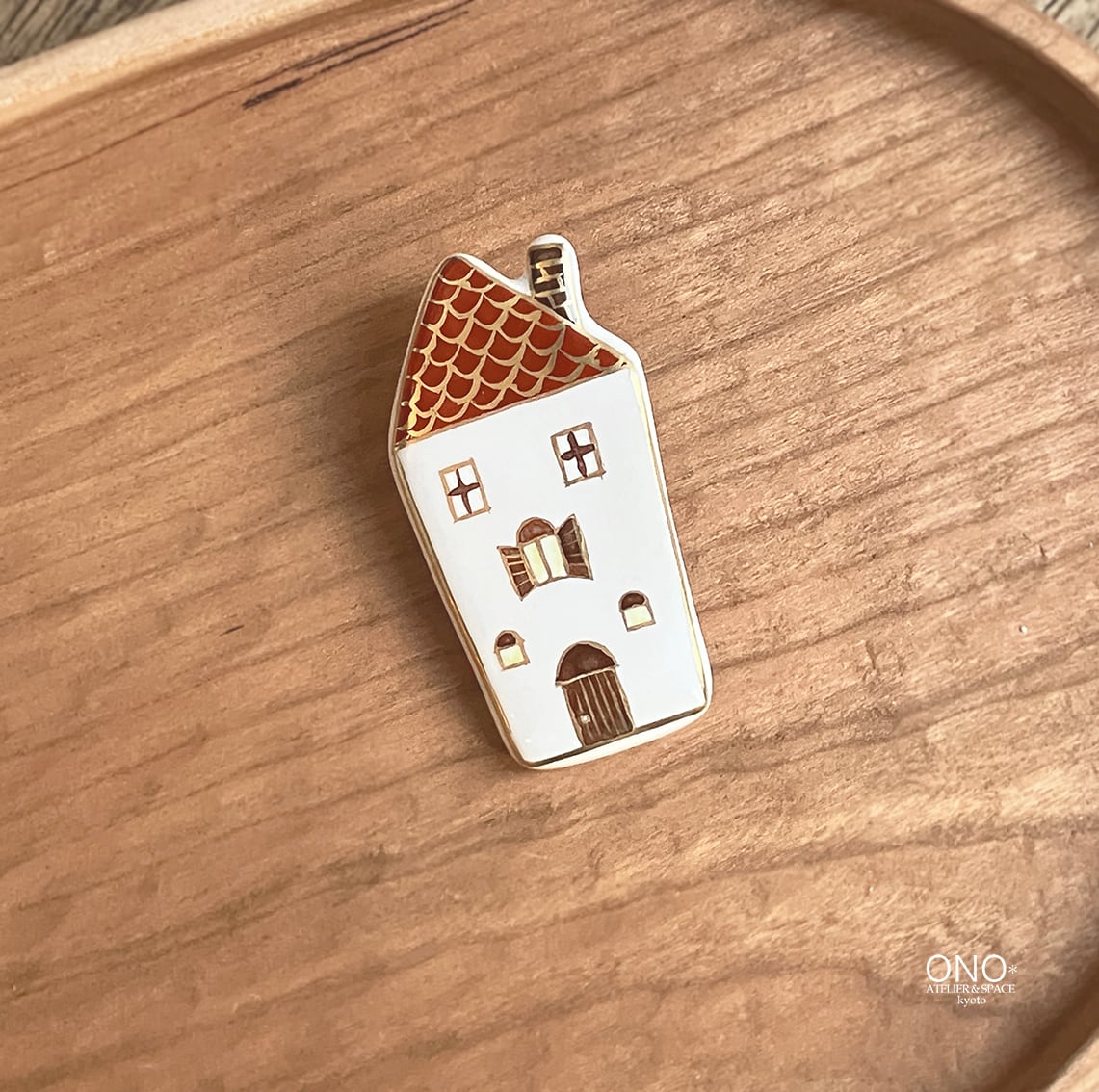 赤い三角屋根のブローチはどこか懐かしく、アンティークな風合いが魅力です。