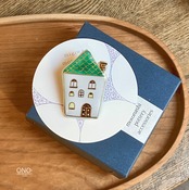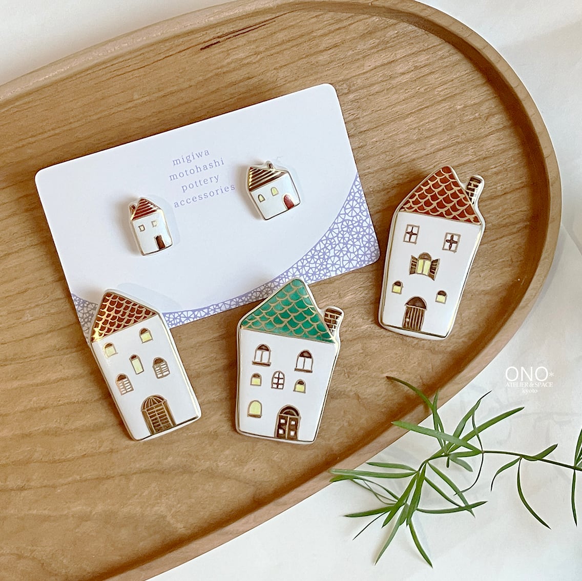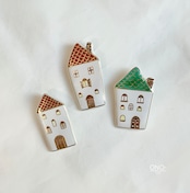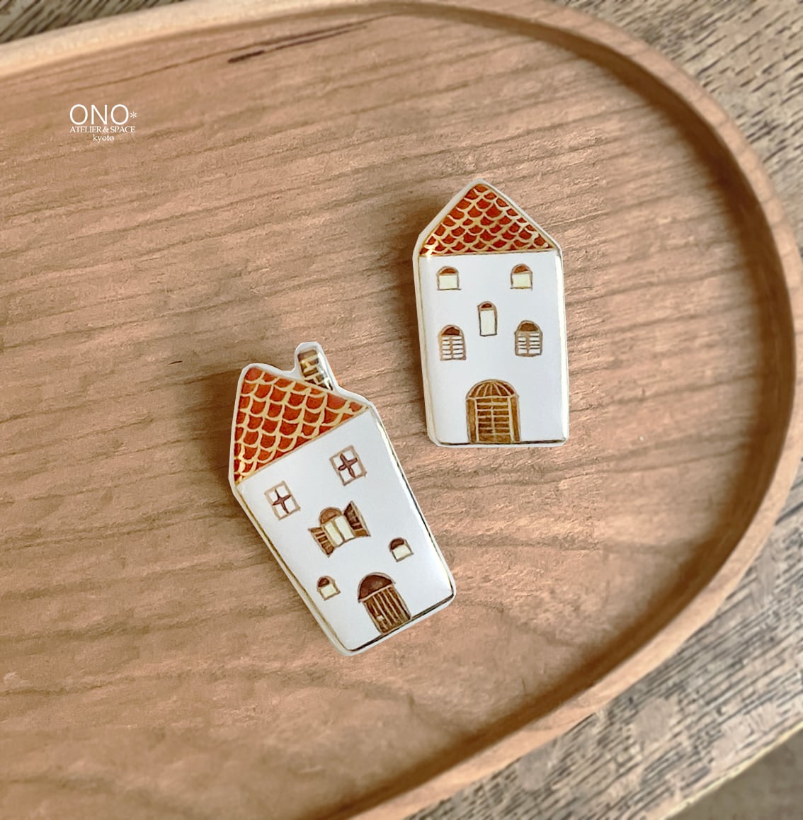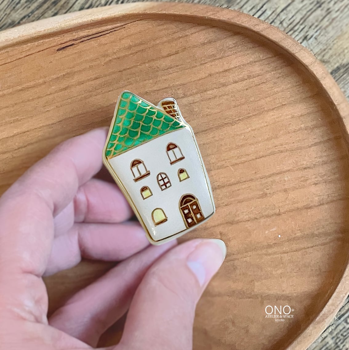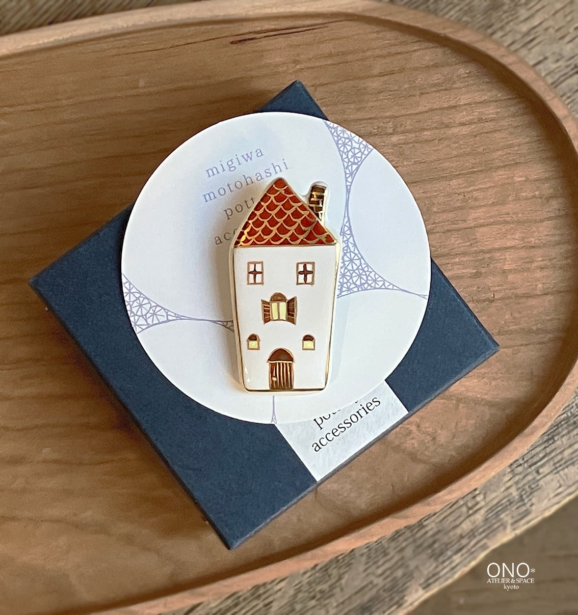 赤い三角屋根のブローチはどこか懐かしく、アンティークな風合いが魅力です。