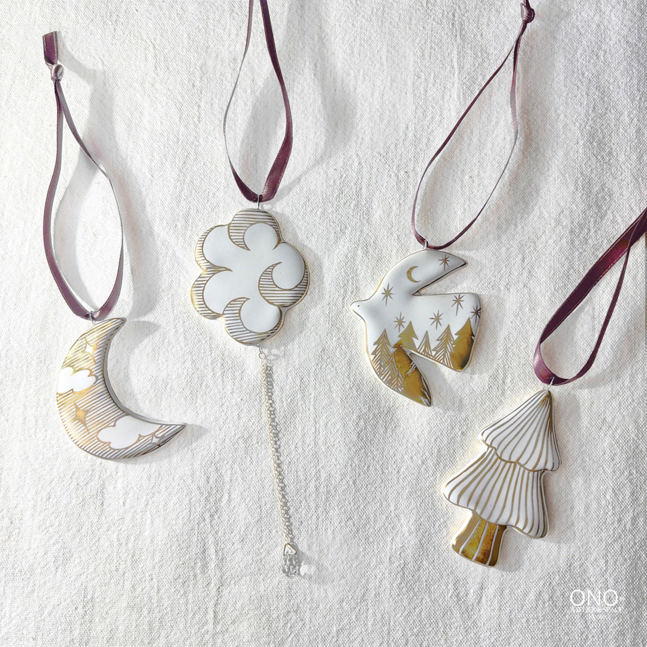 ブローチシリーズとリンクしたデザインのオーナメント。