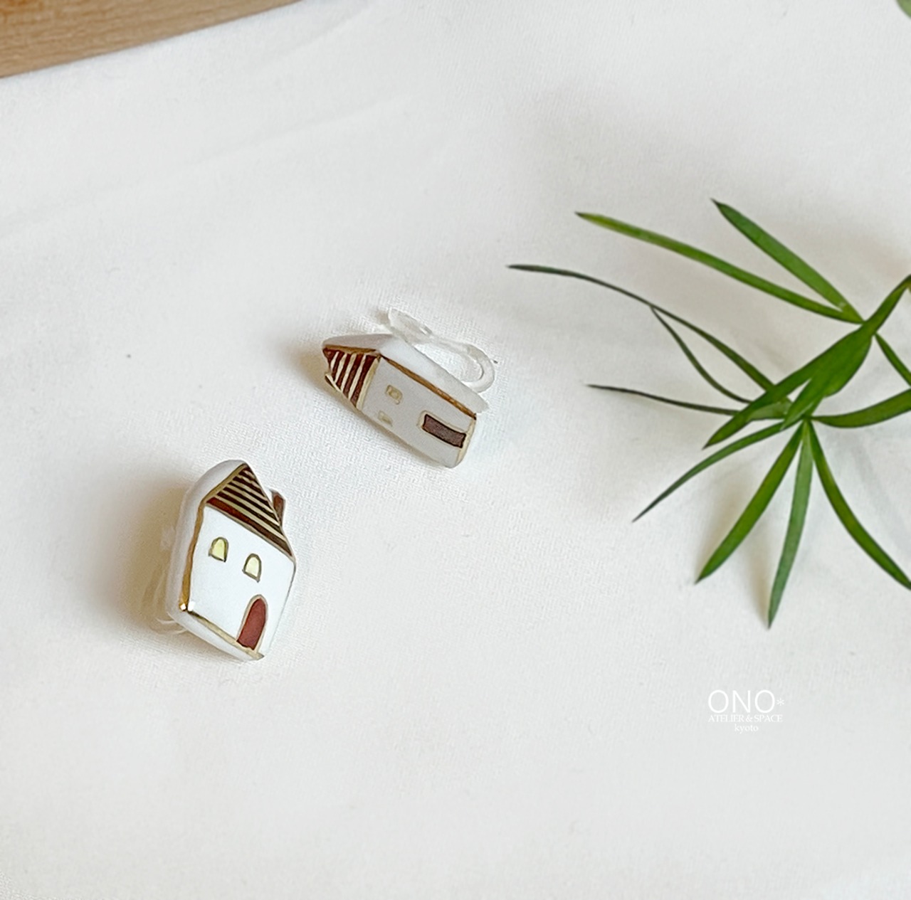 陶器のポストタイプのピアス。この度の展覧会テーマ『私の窓』をイメージした作品です。