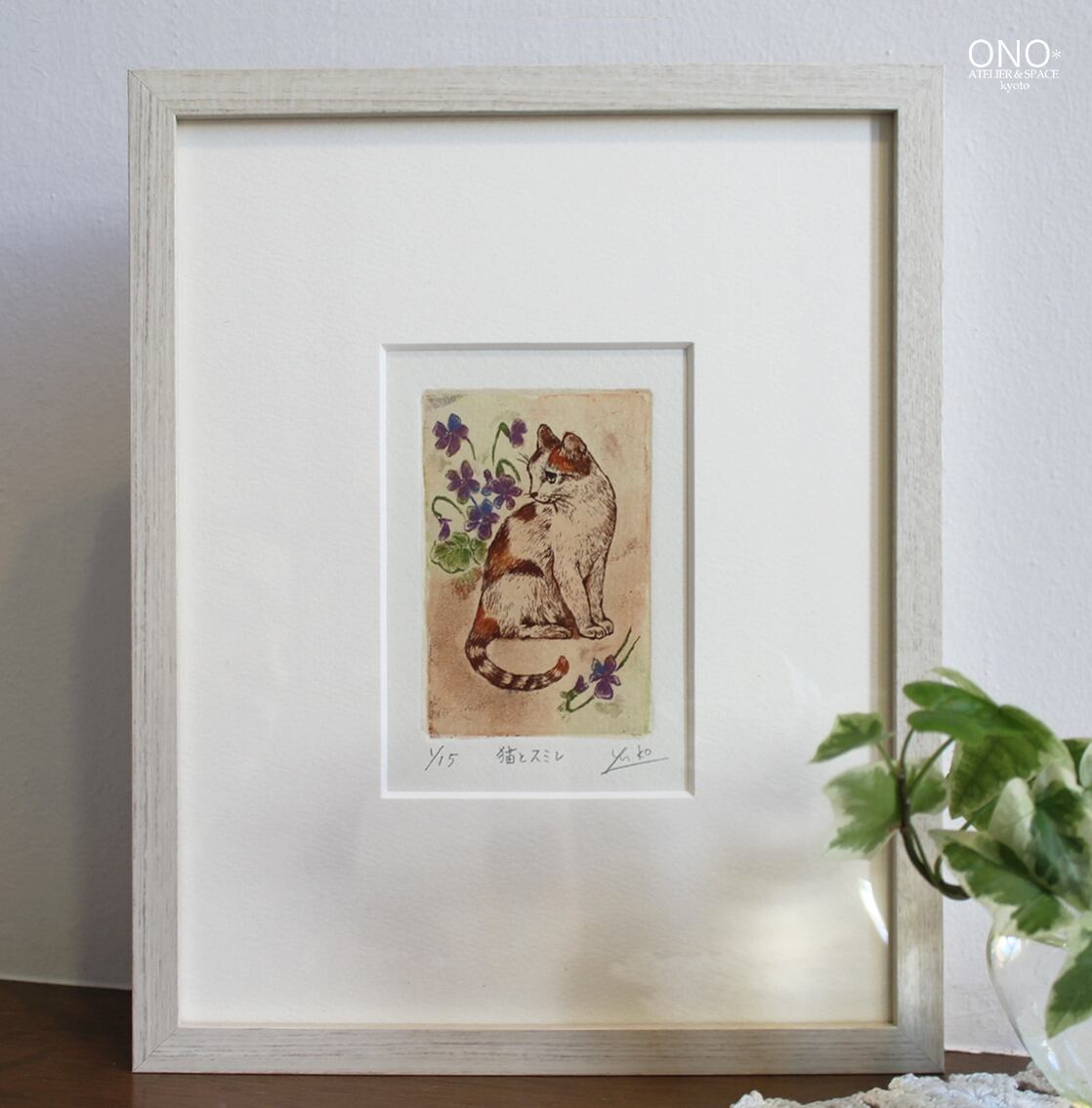 PUKU*銅版画作品フレーム『猫とスミレ』