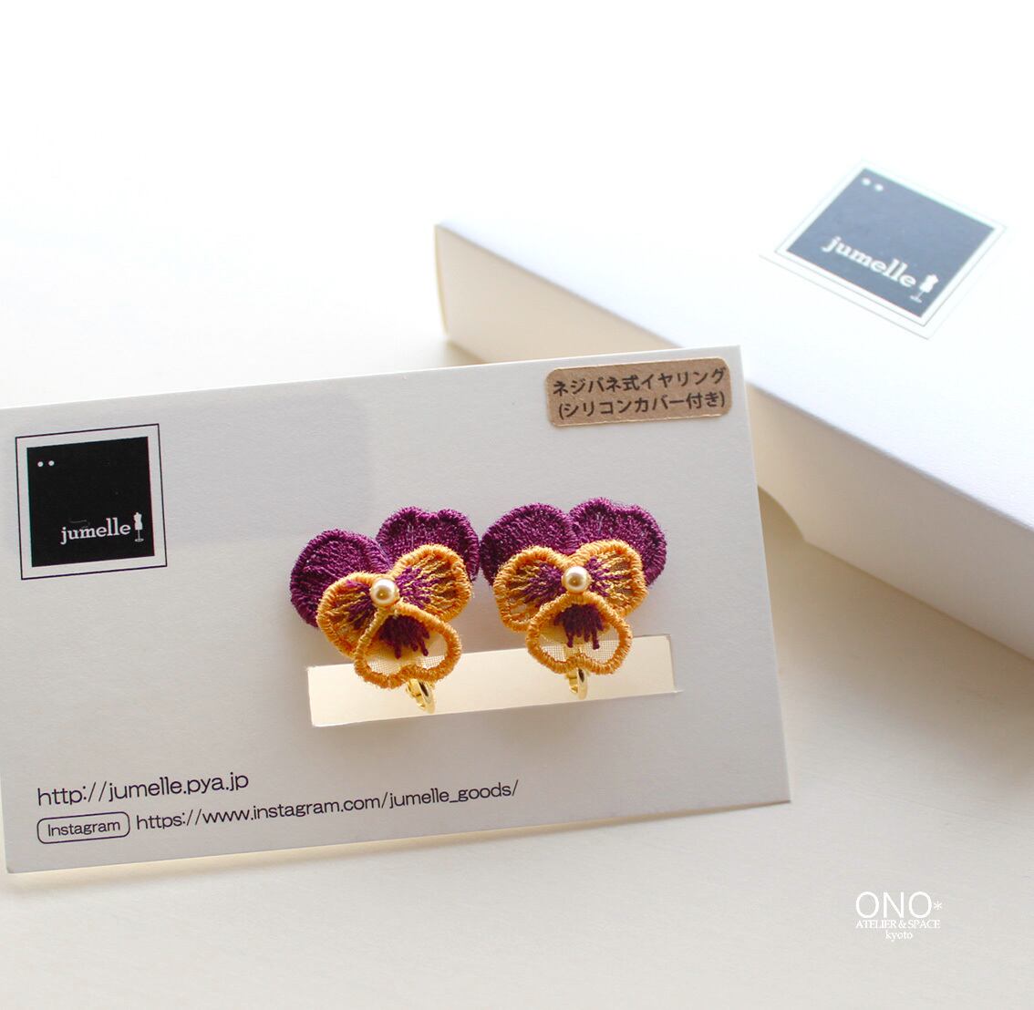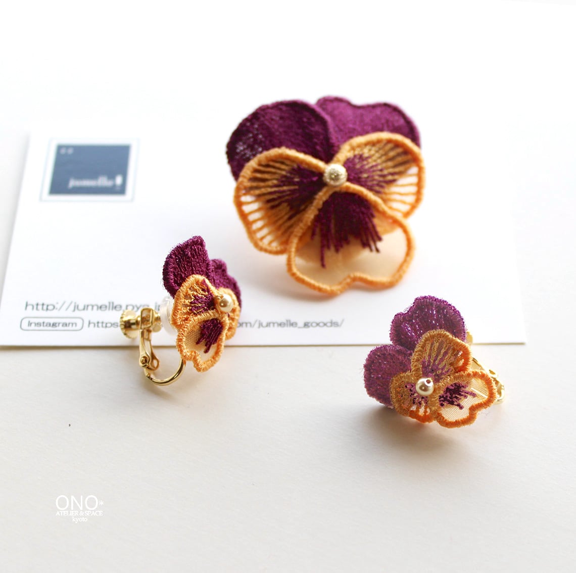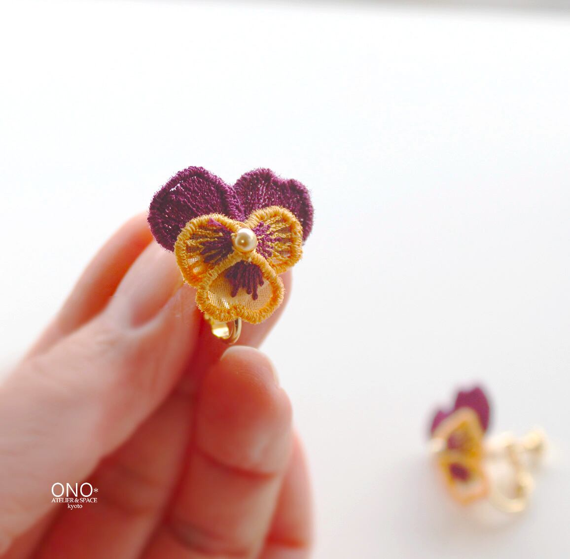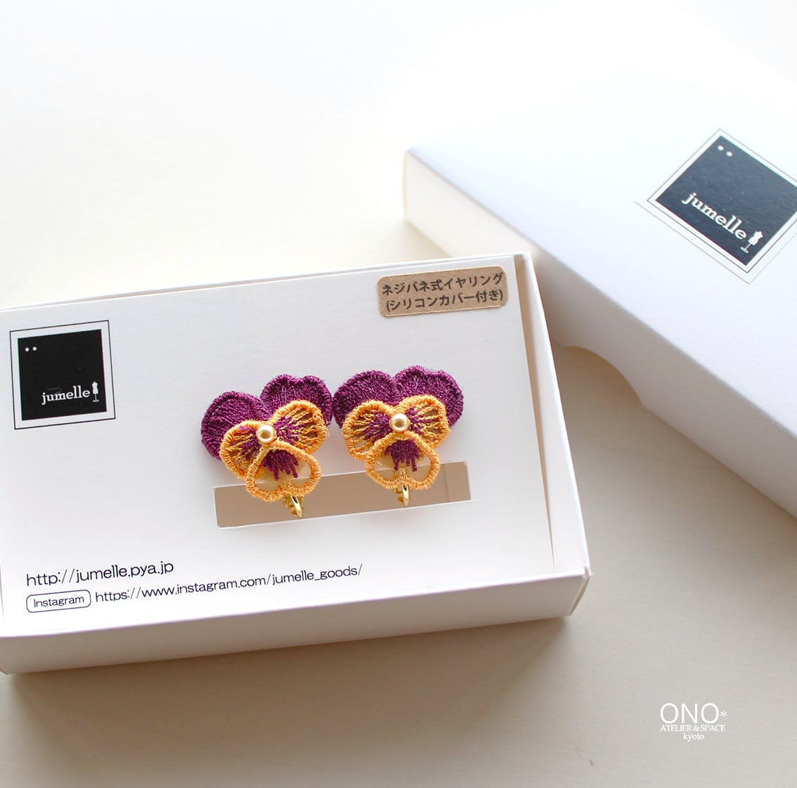 「ミニサイズのビオラがお耳を可愛らしく華やかに彩るイヤリング。