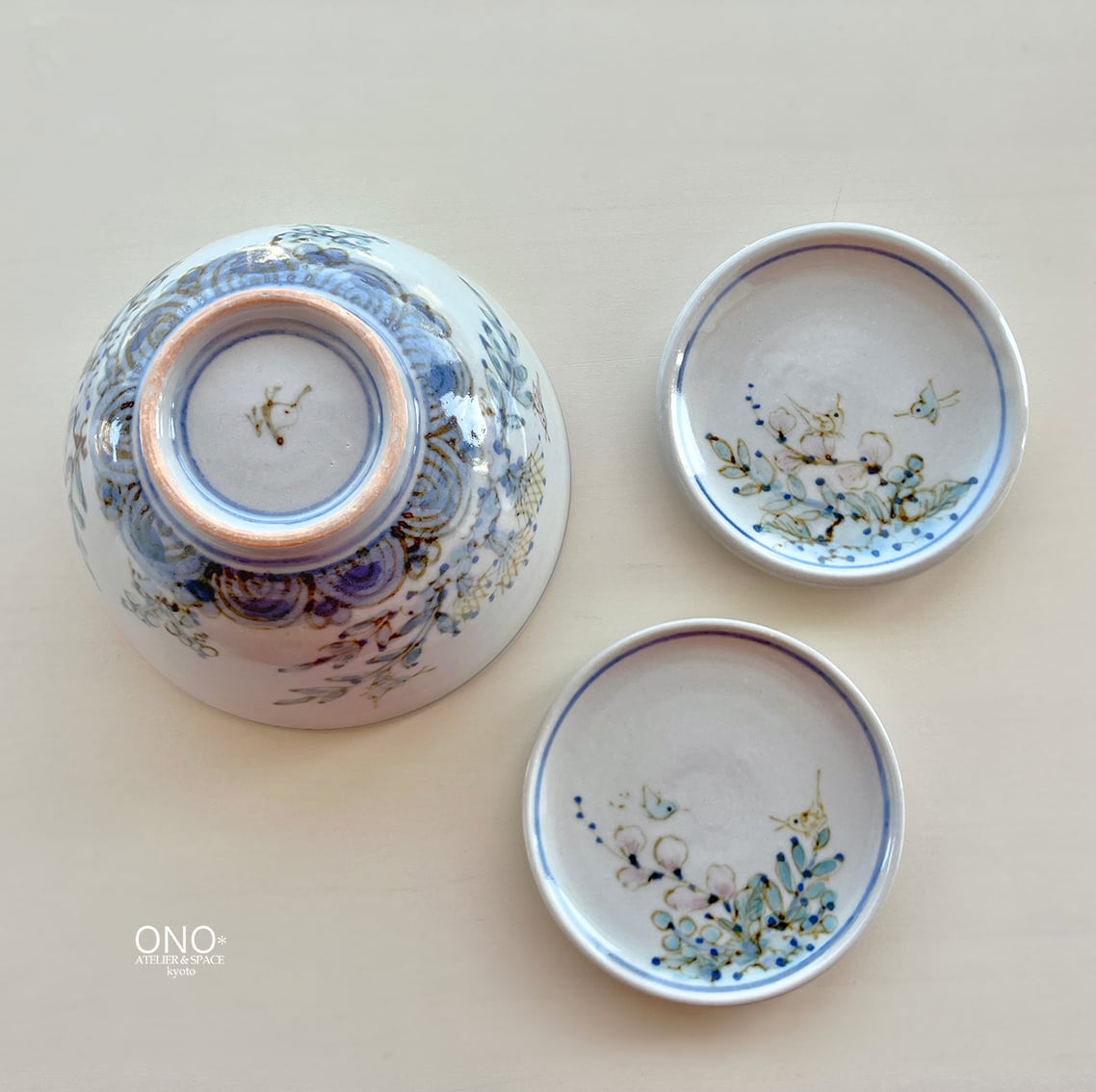 表面に描かれた草花と鳥がほのぼのと癒されます。
