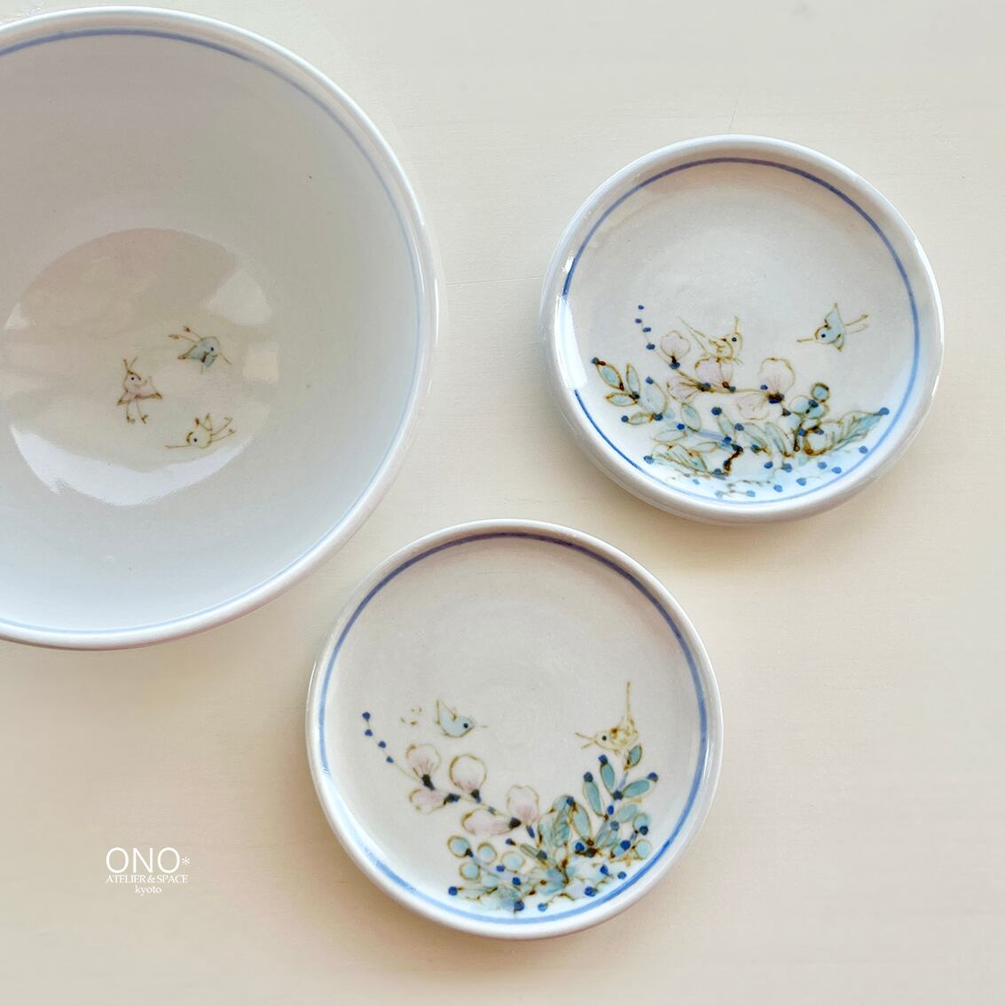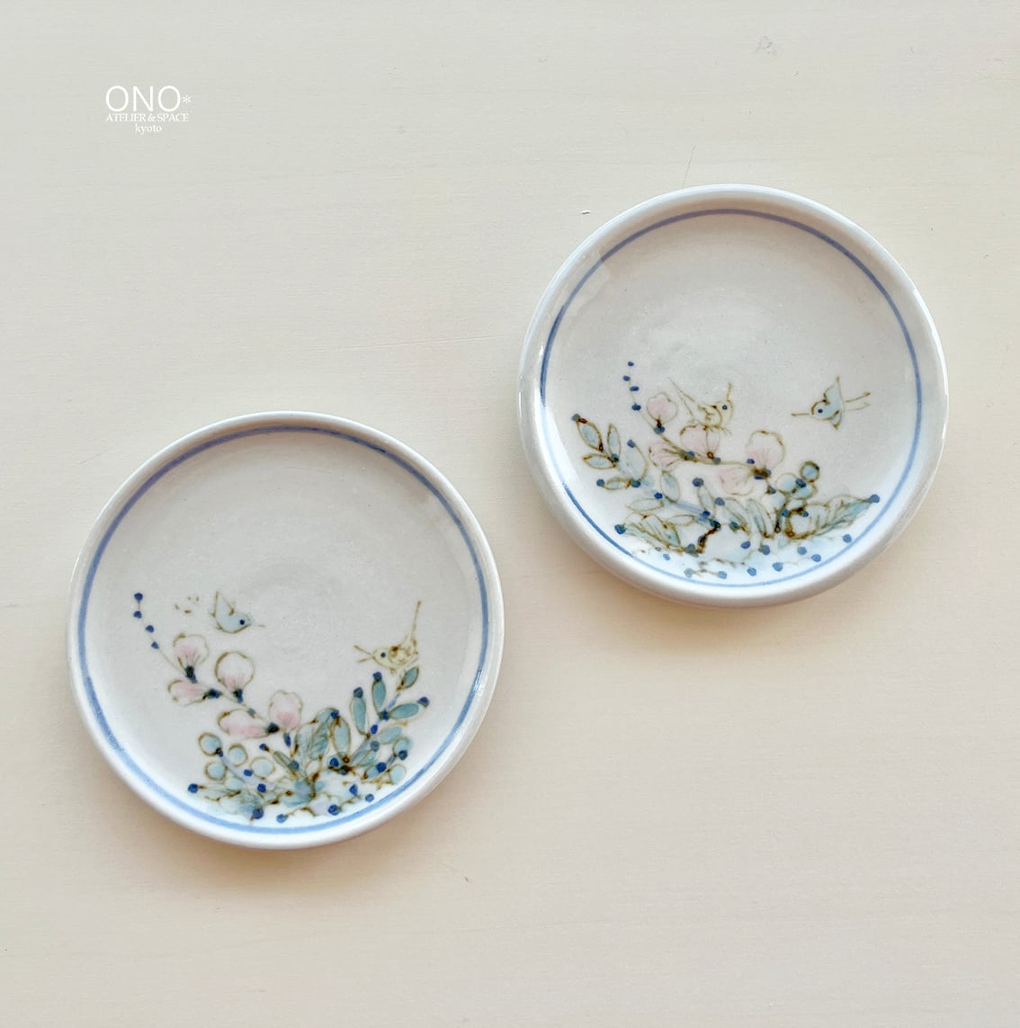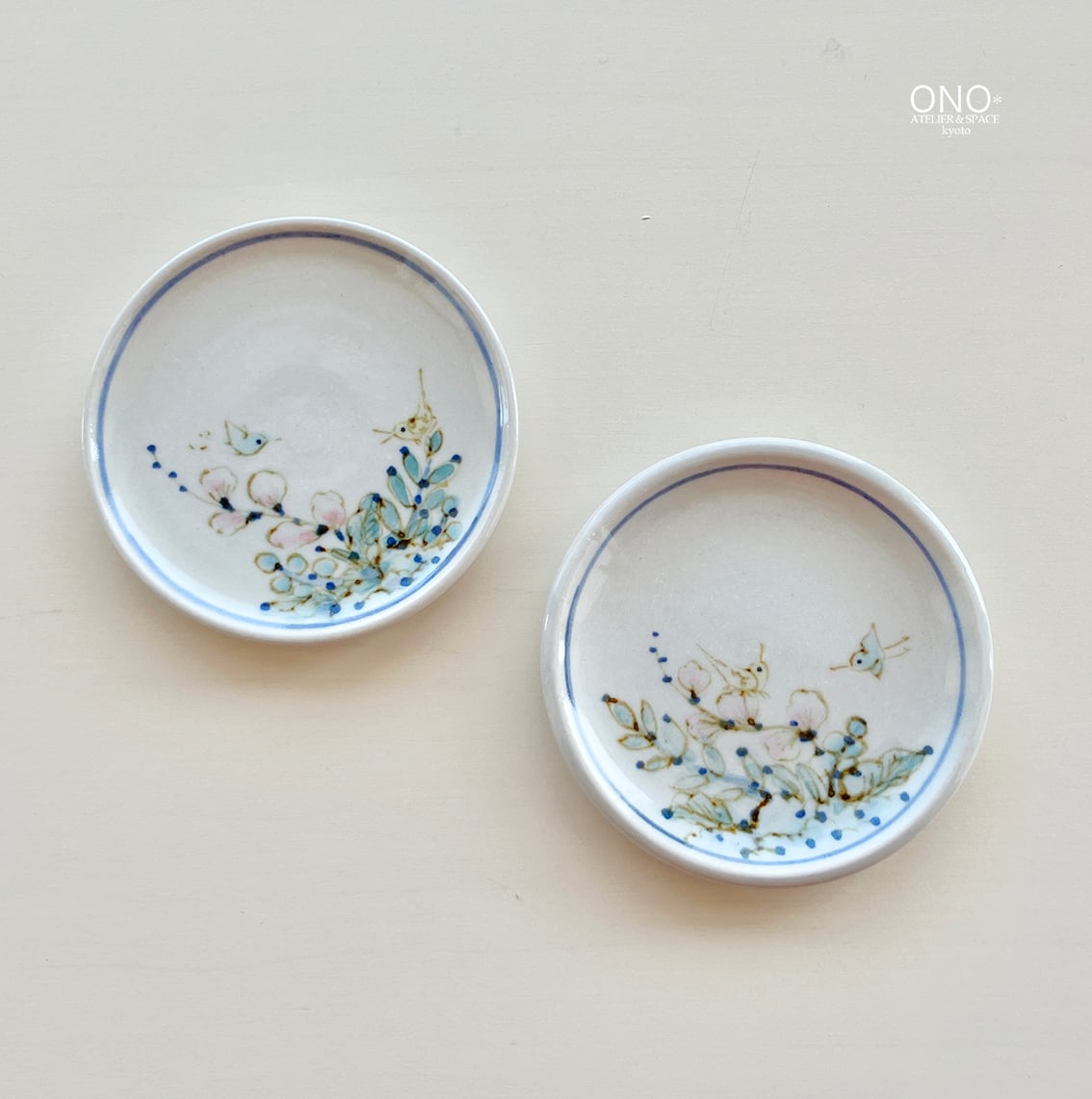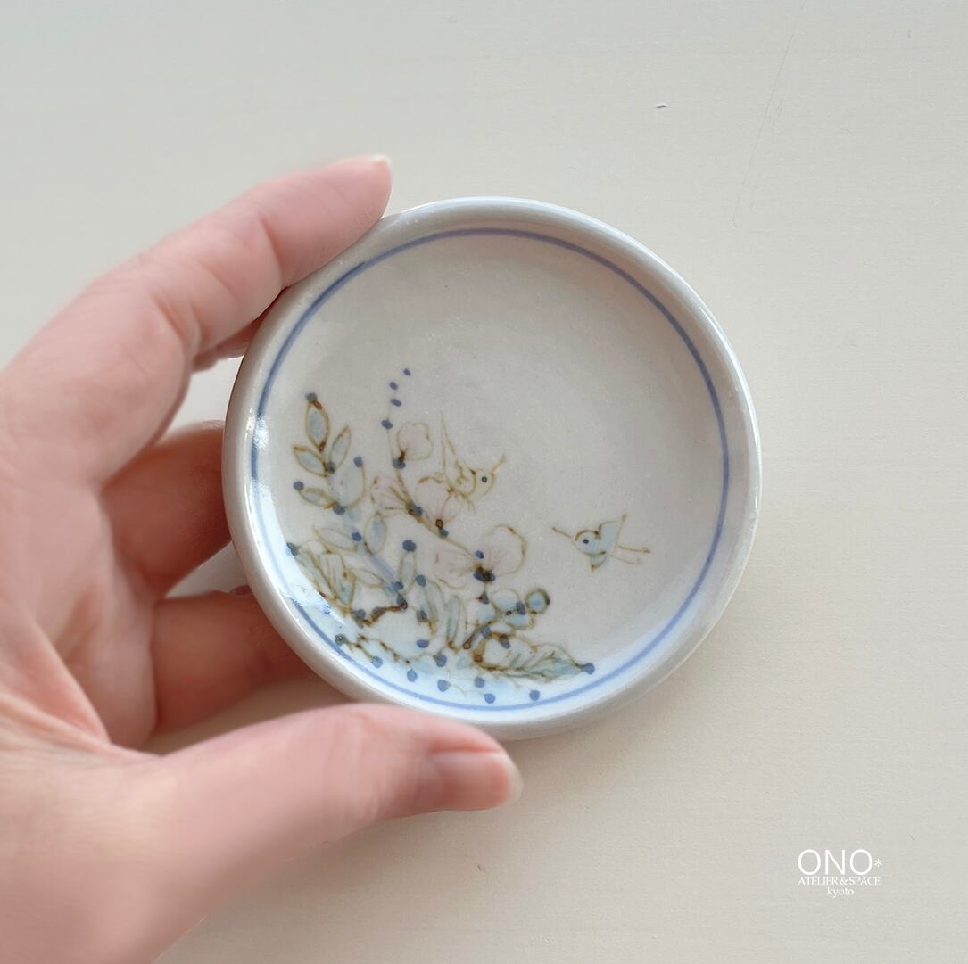 田頭由起 草花と鳥の小皿