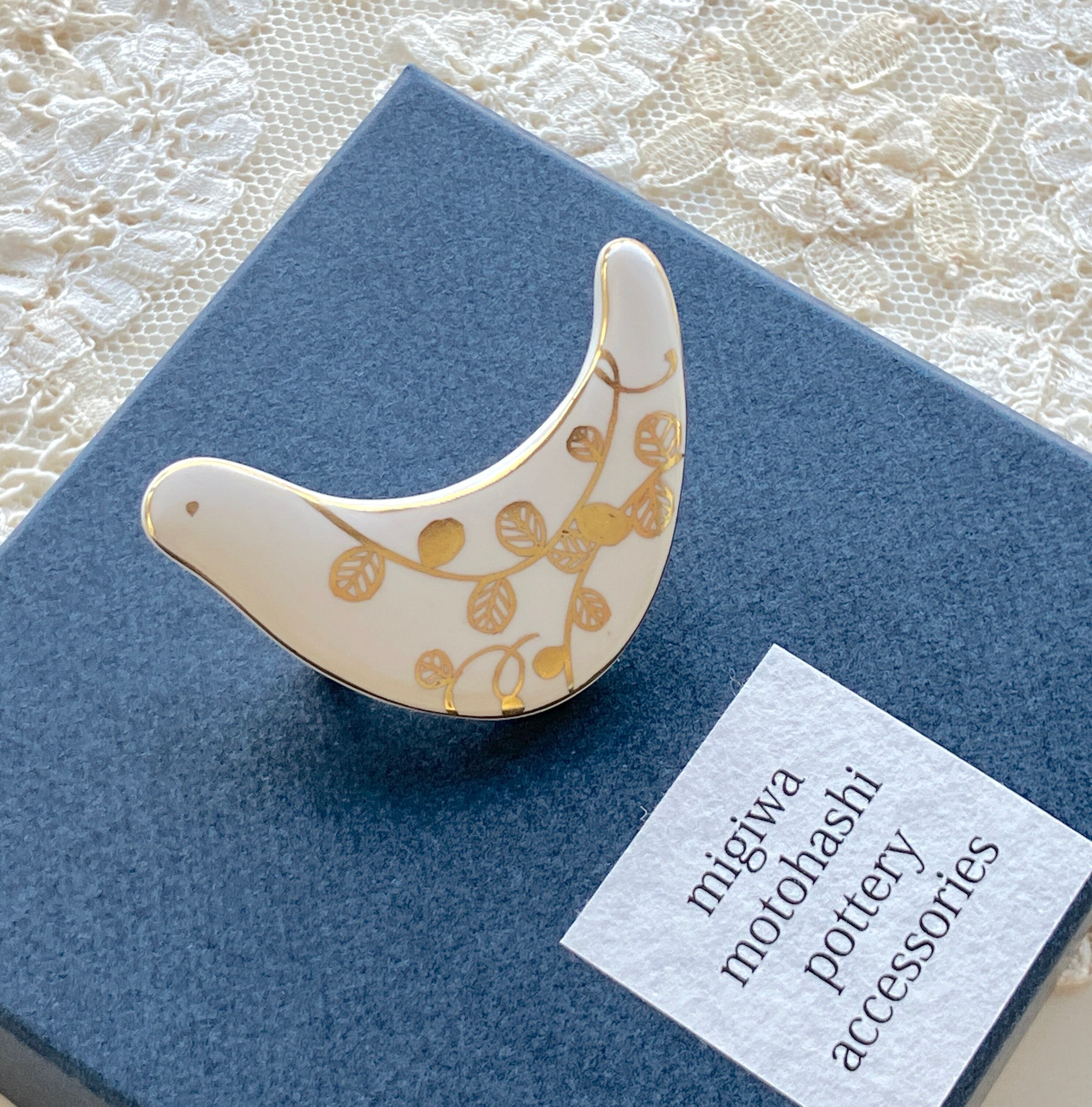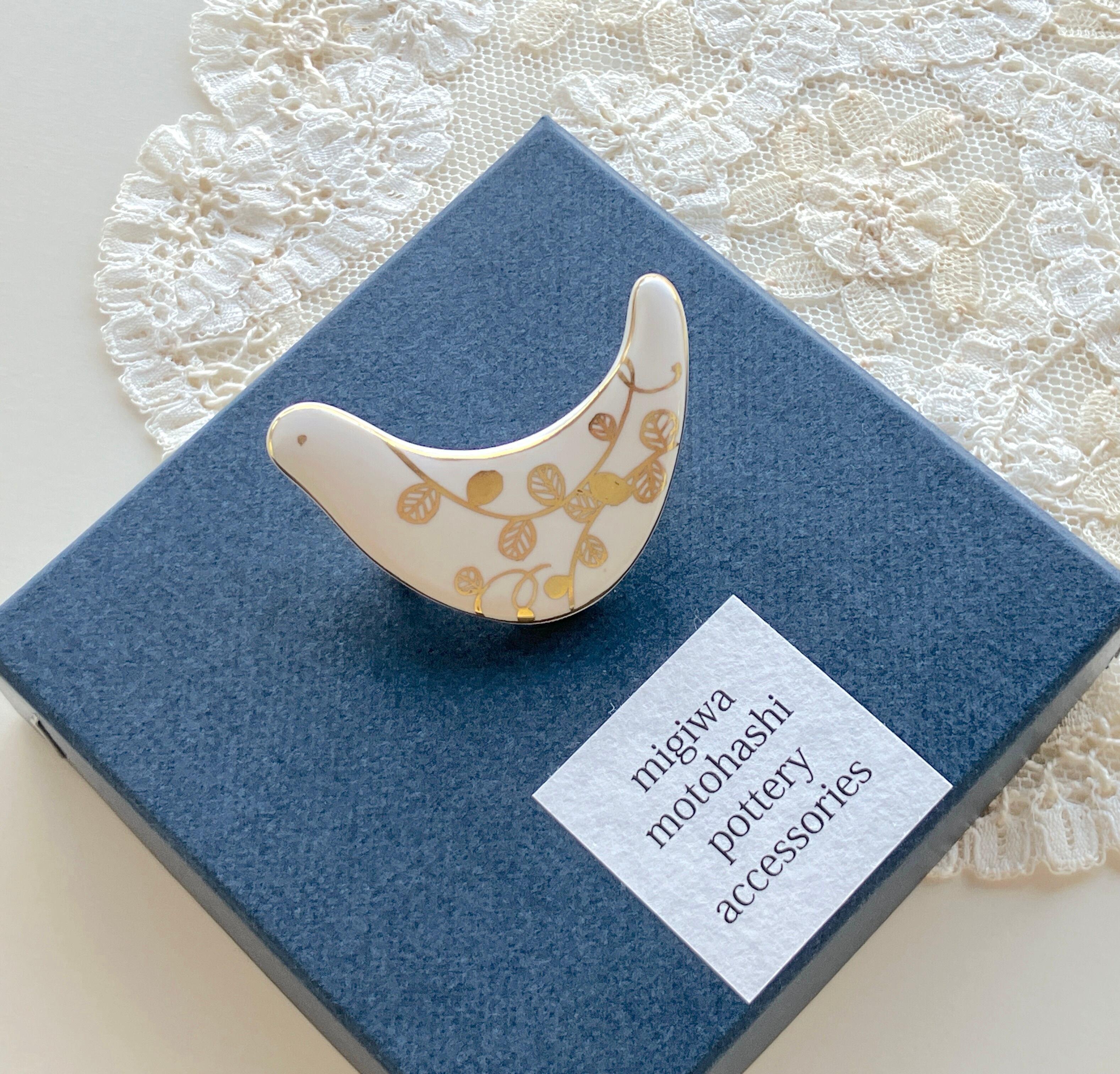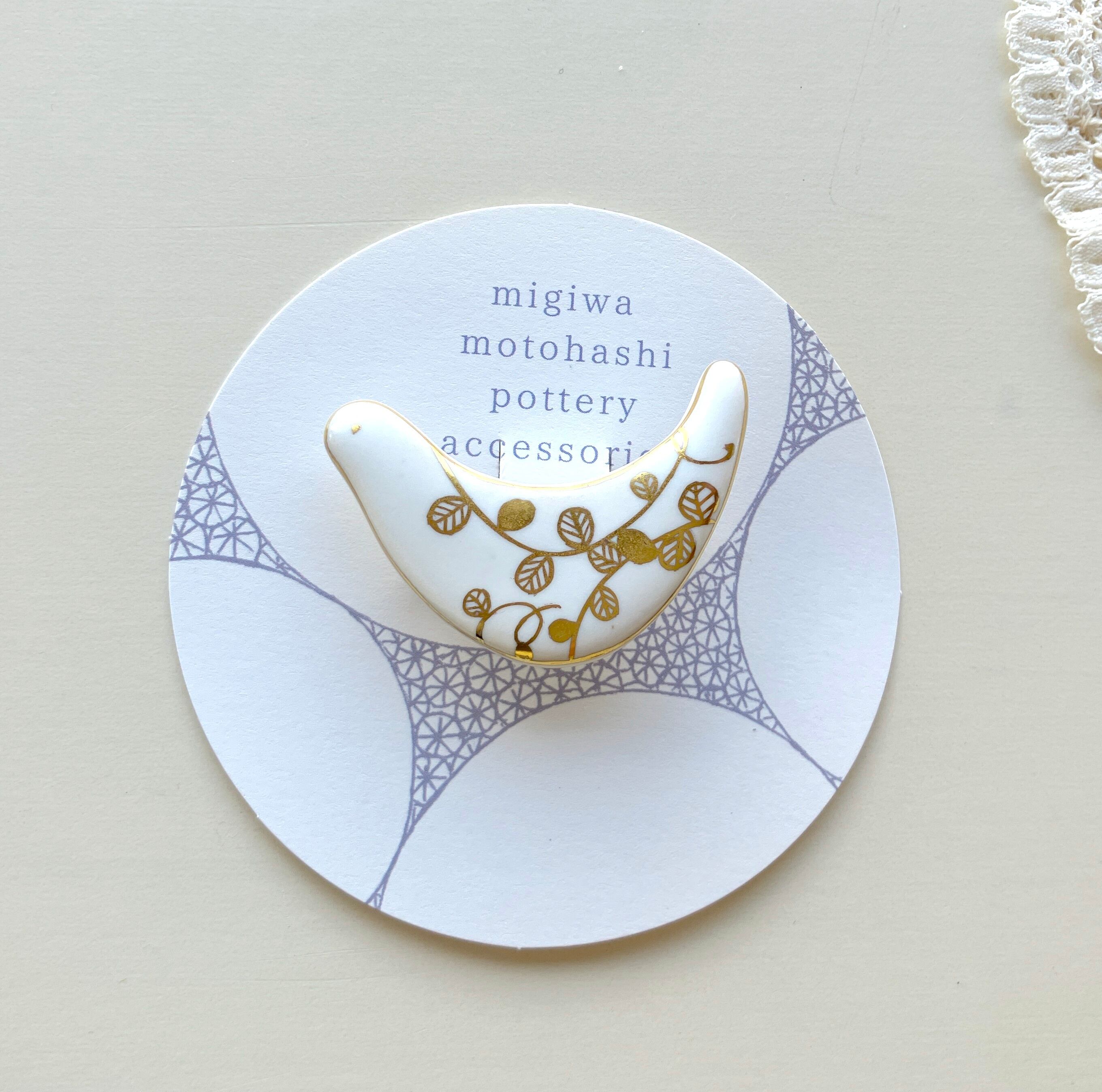 元橋みぎわ 鳥のブローチ 葉っぱ