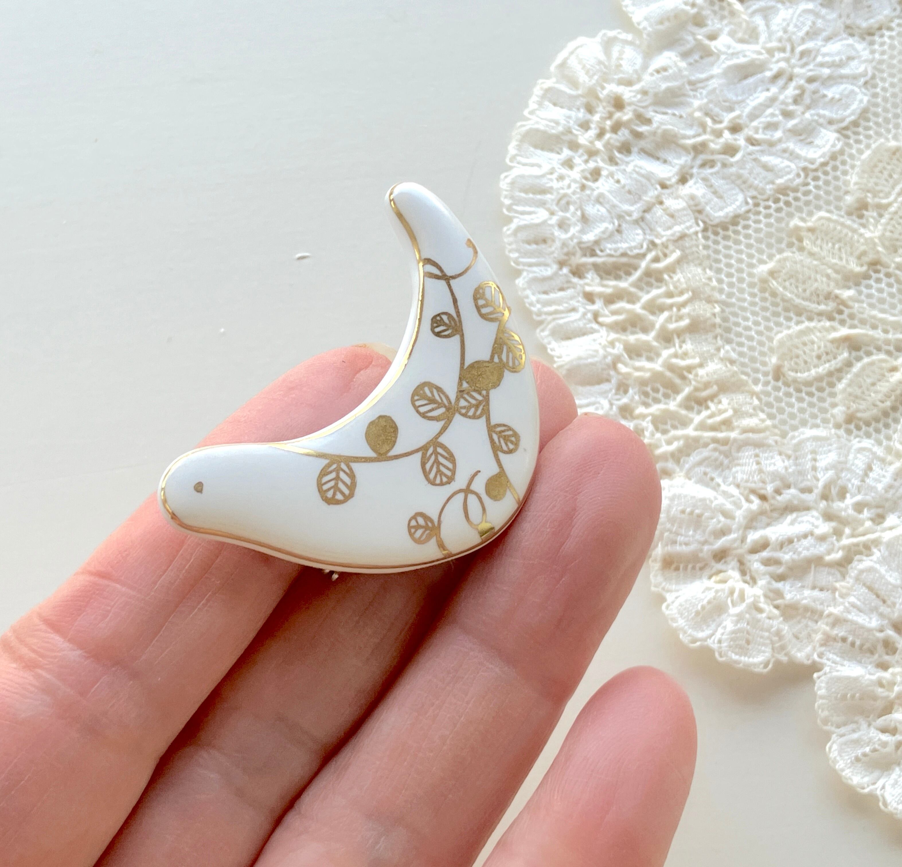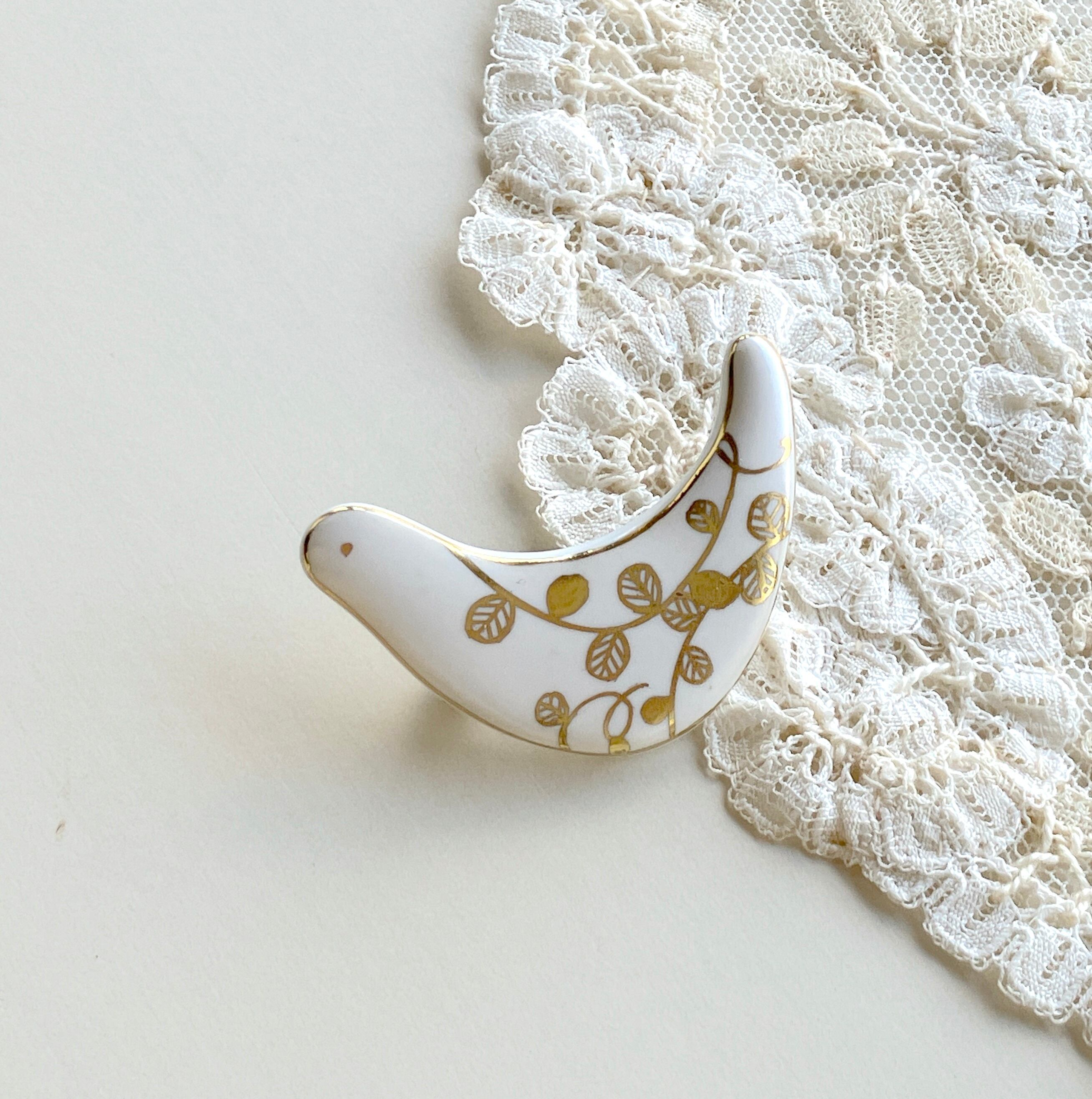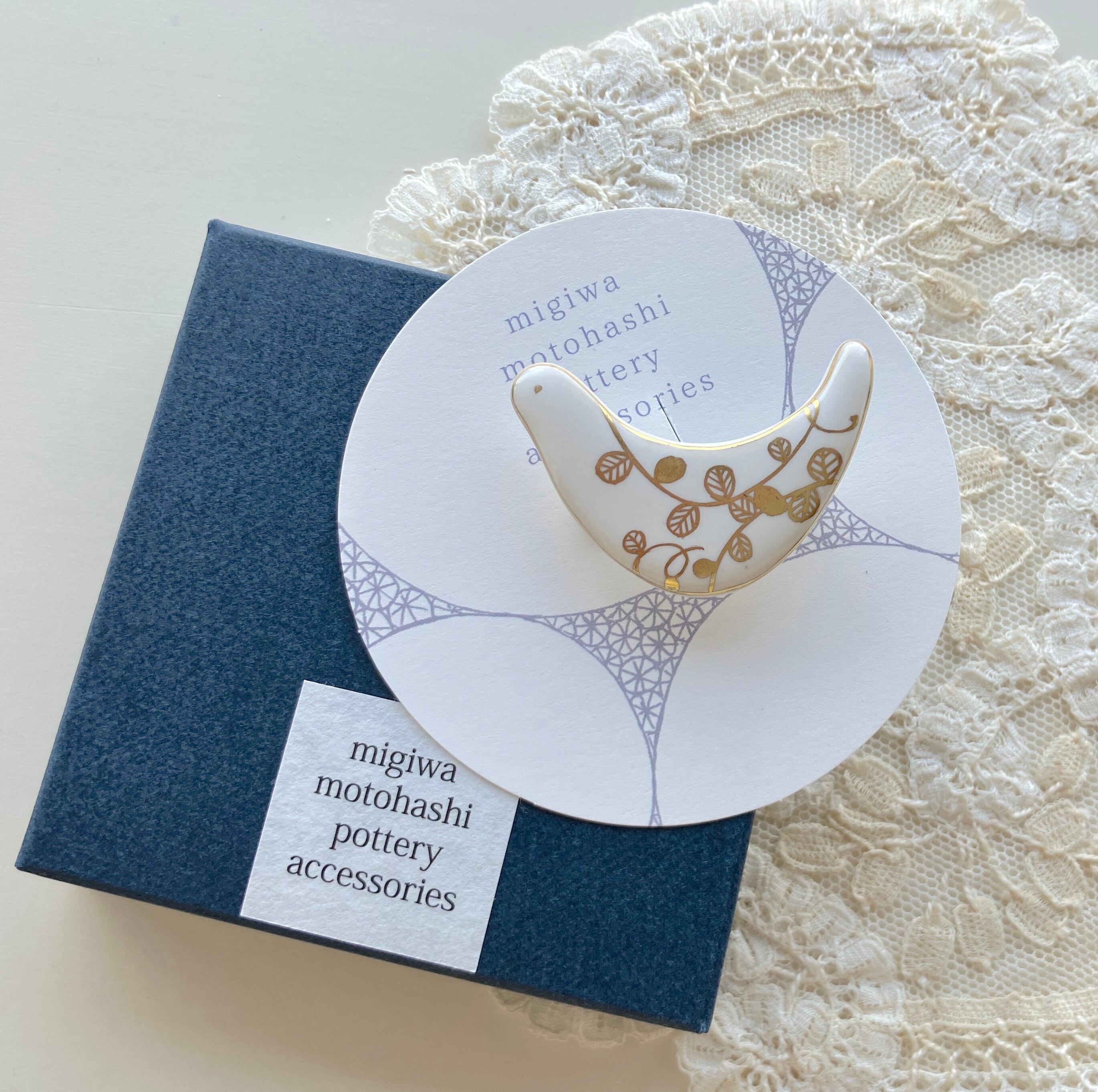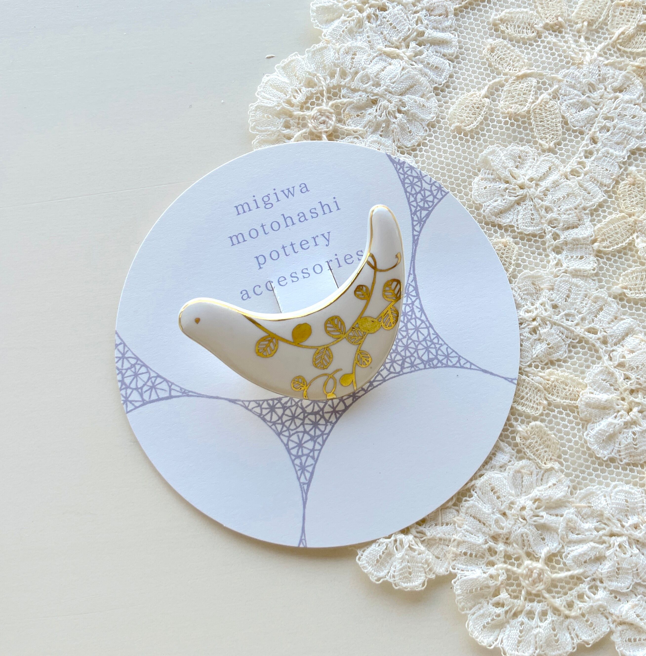 元橋みぎわ 鳥のブローチ 葉っぱ