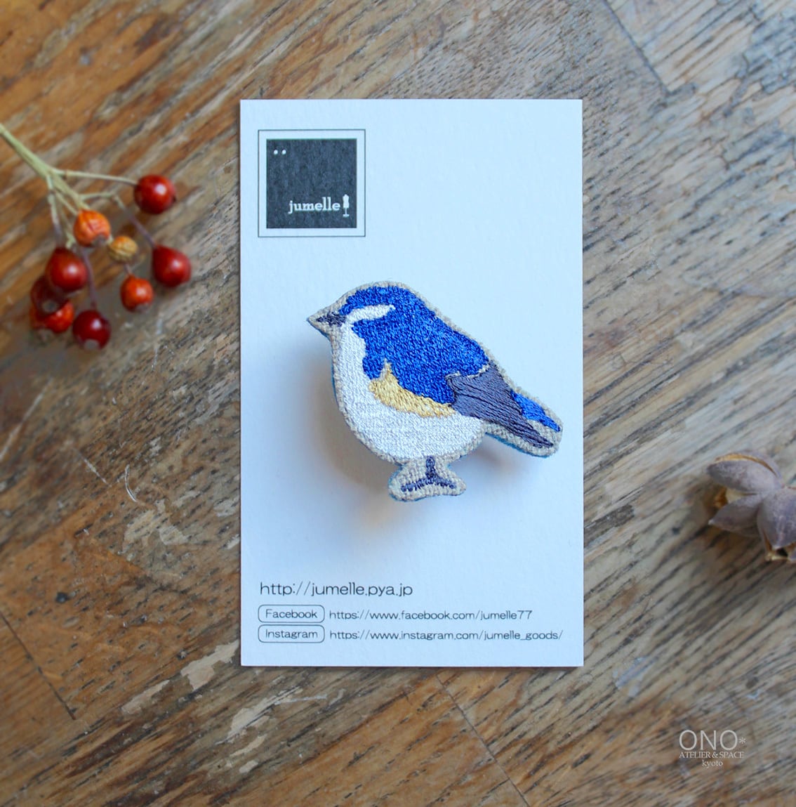 jumelle 刺繍ブローチ ルリビタキ