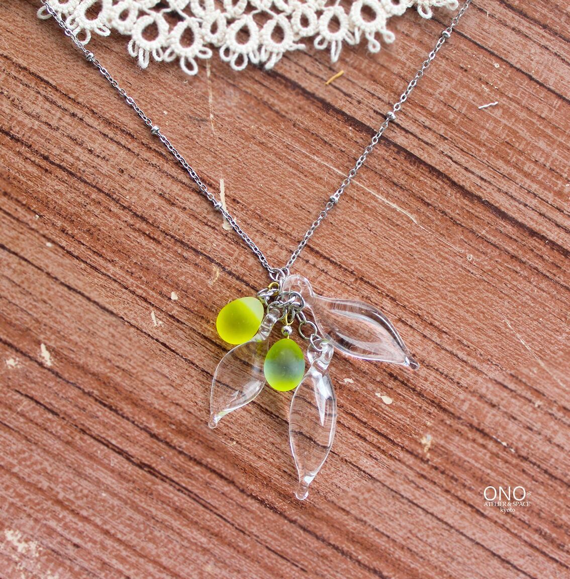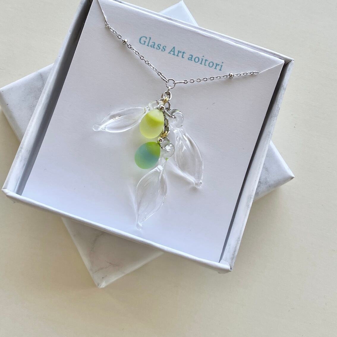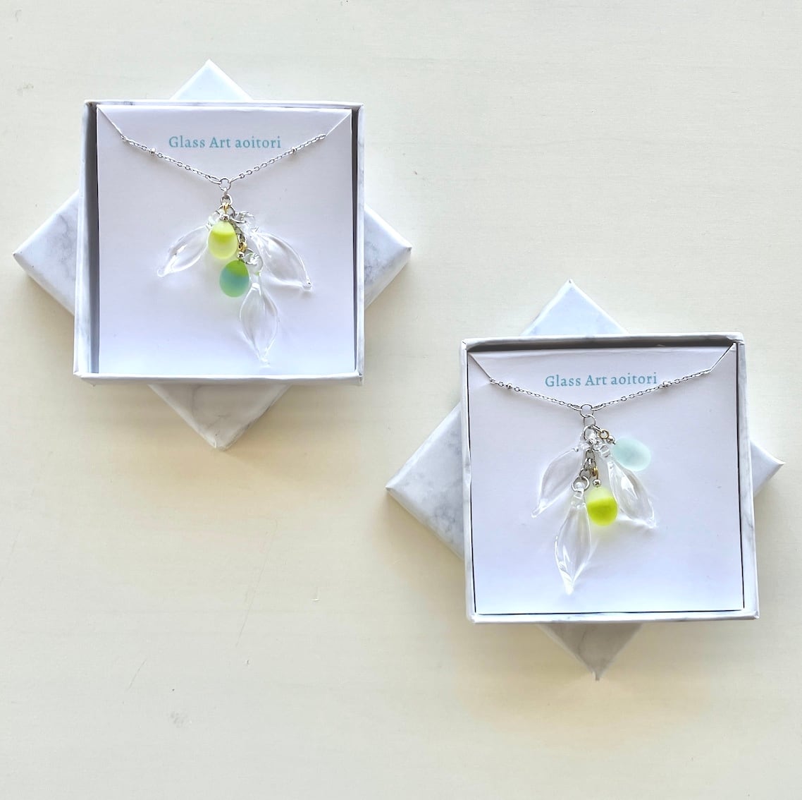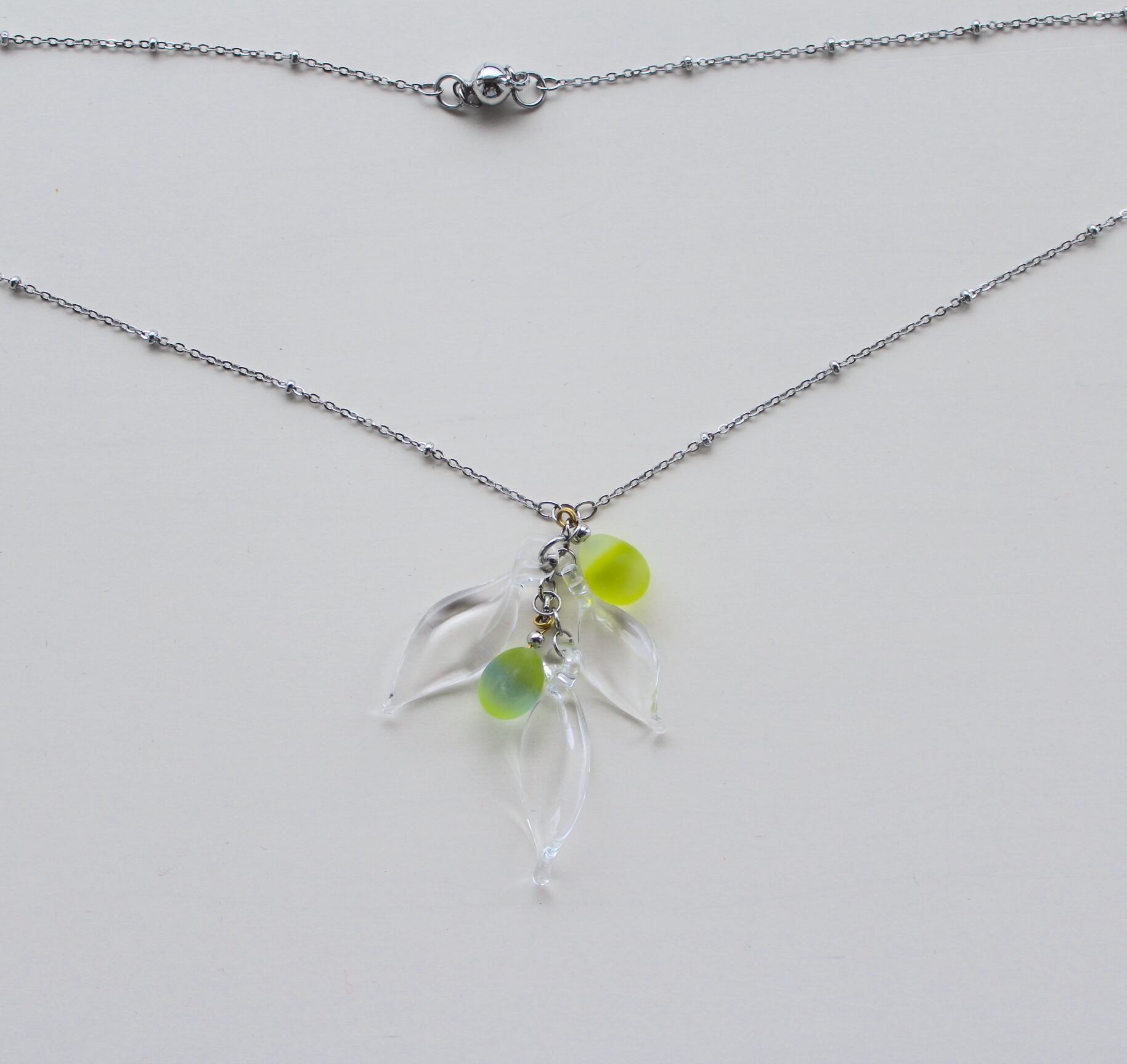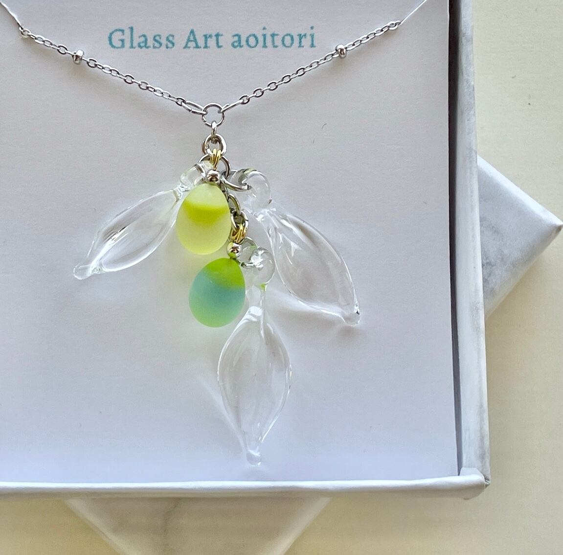 「ぐみの宝石ボタニカルネックレス」白黄 黄緑 青 2粒3葉