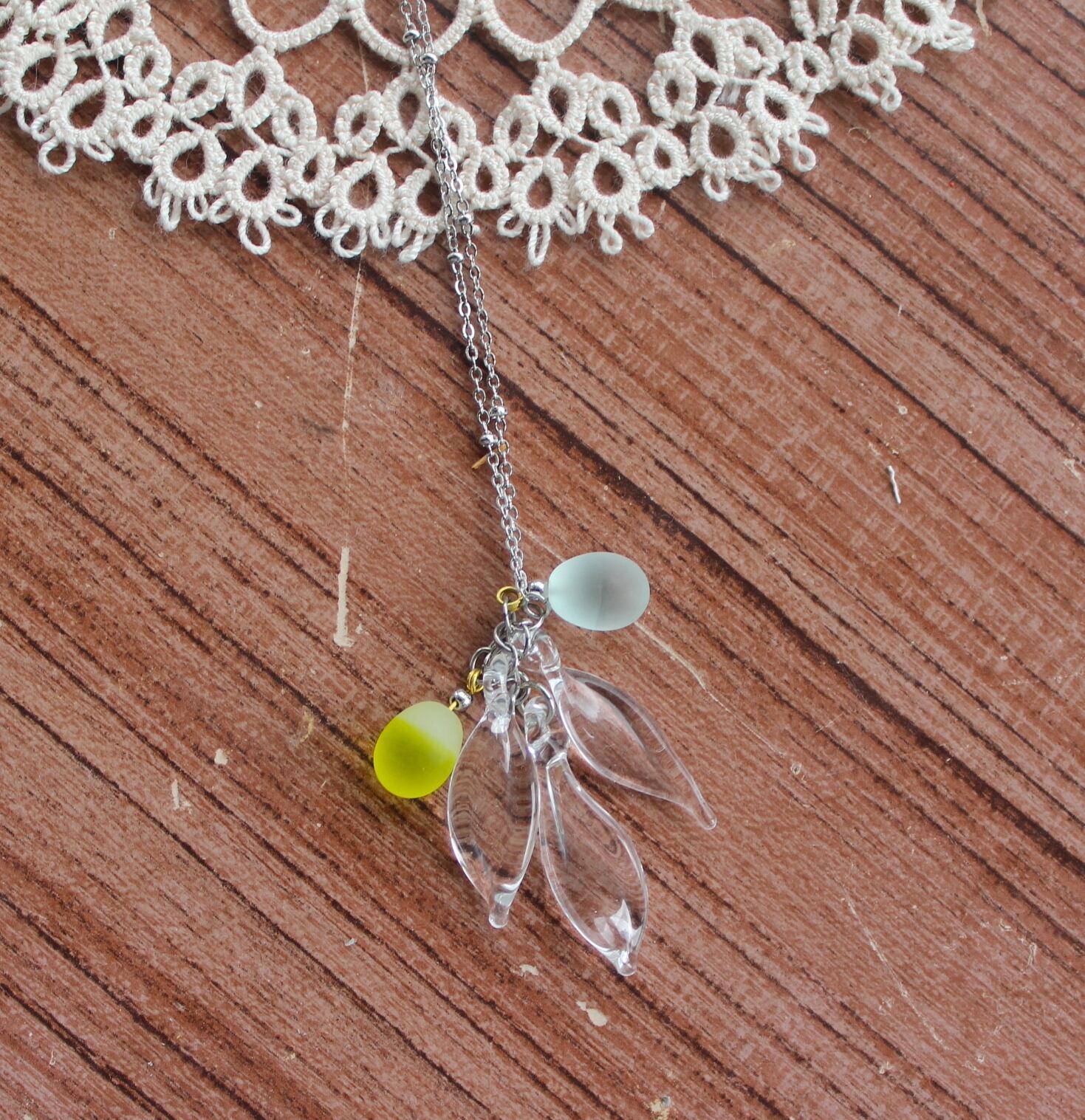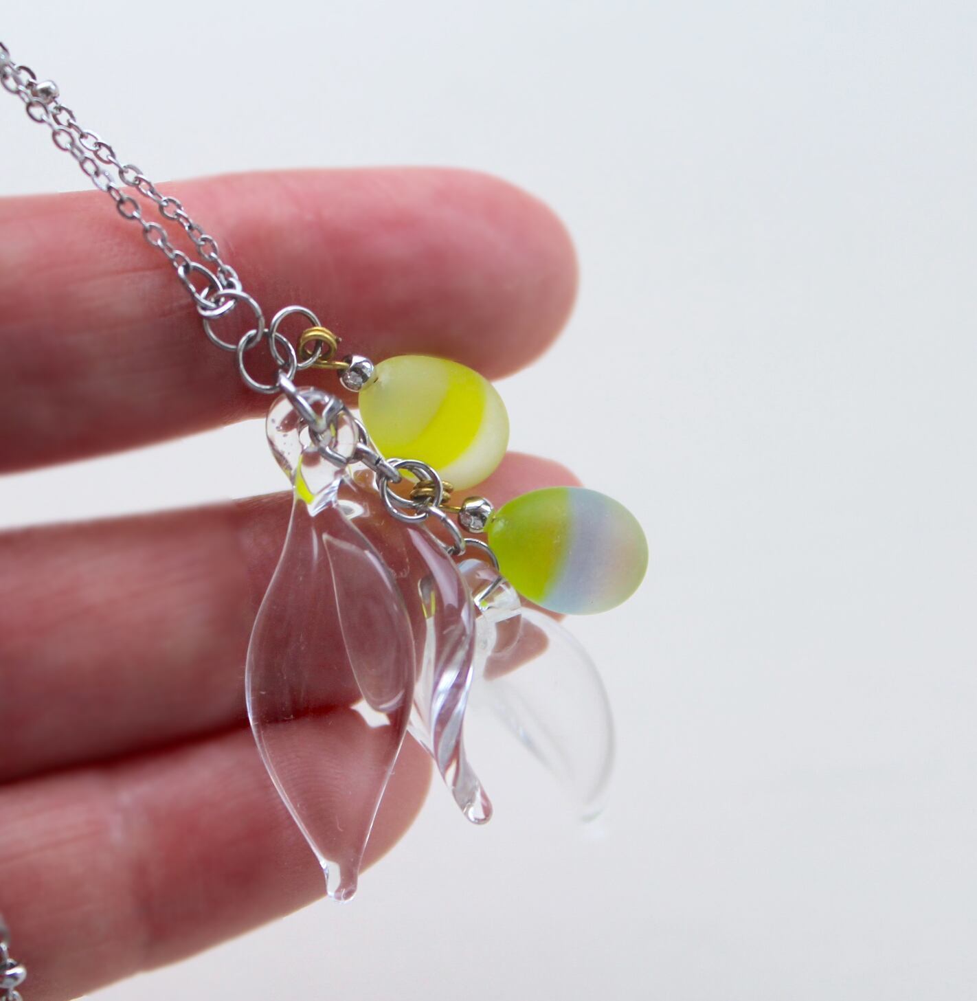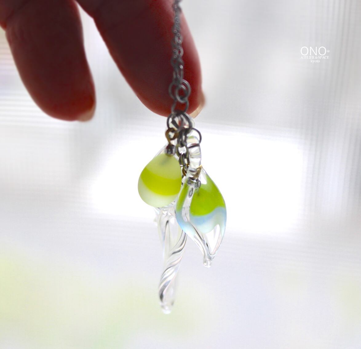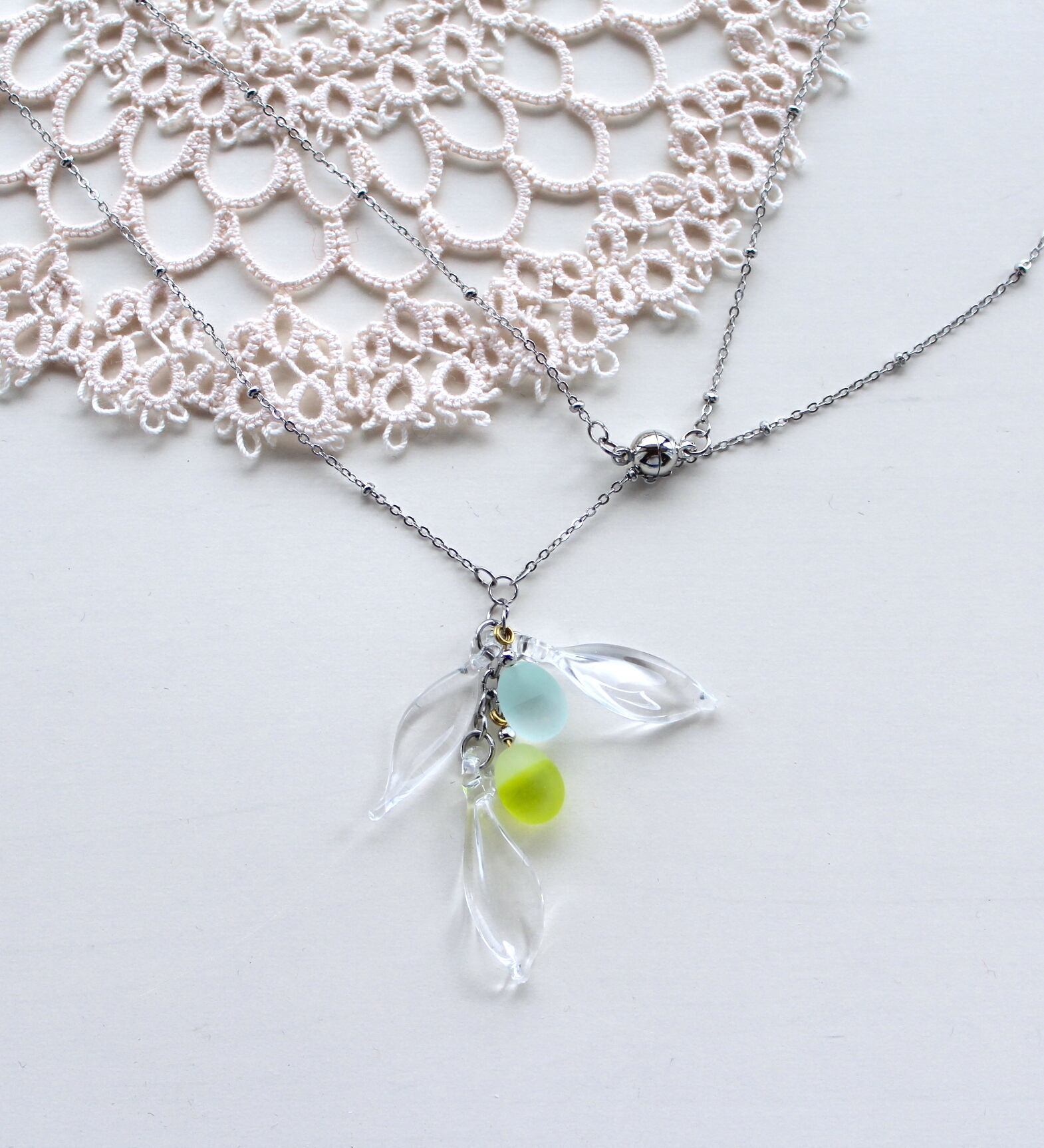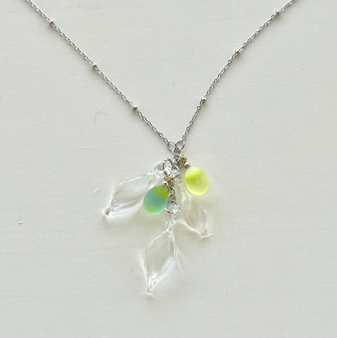 「ぐみの宝石ボタニカルネックレス」白黄 黄緑 青 2粒3葉