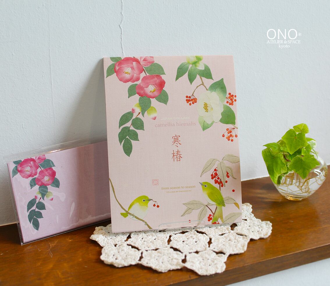 コラージュ作品『椿とメジロ』を便箋用にデザインしました。
