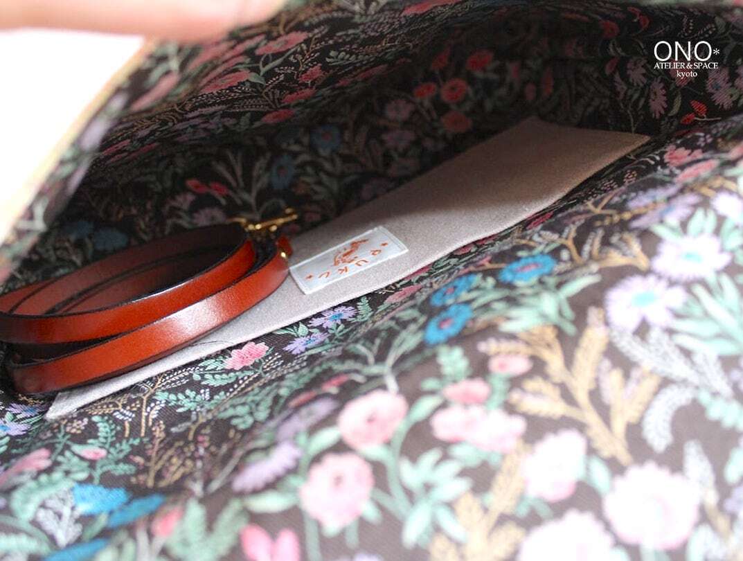 素敵なボタニカル花プリントの内側にはポケットが一つついています。
