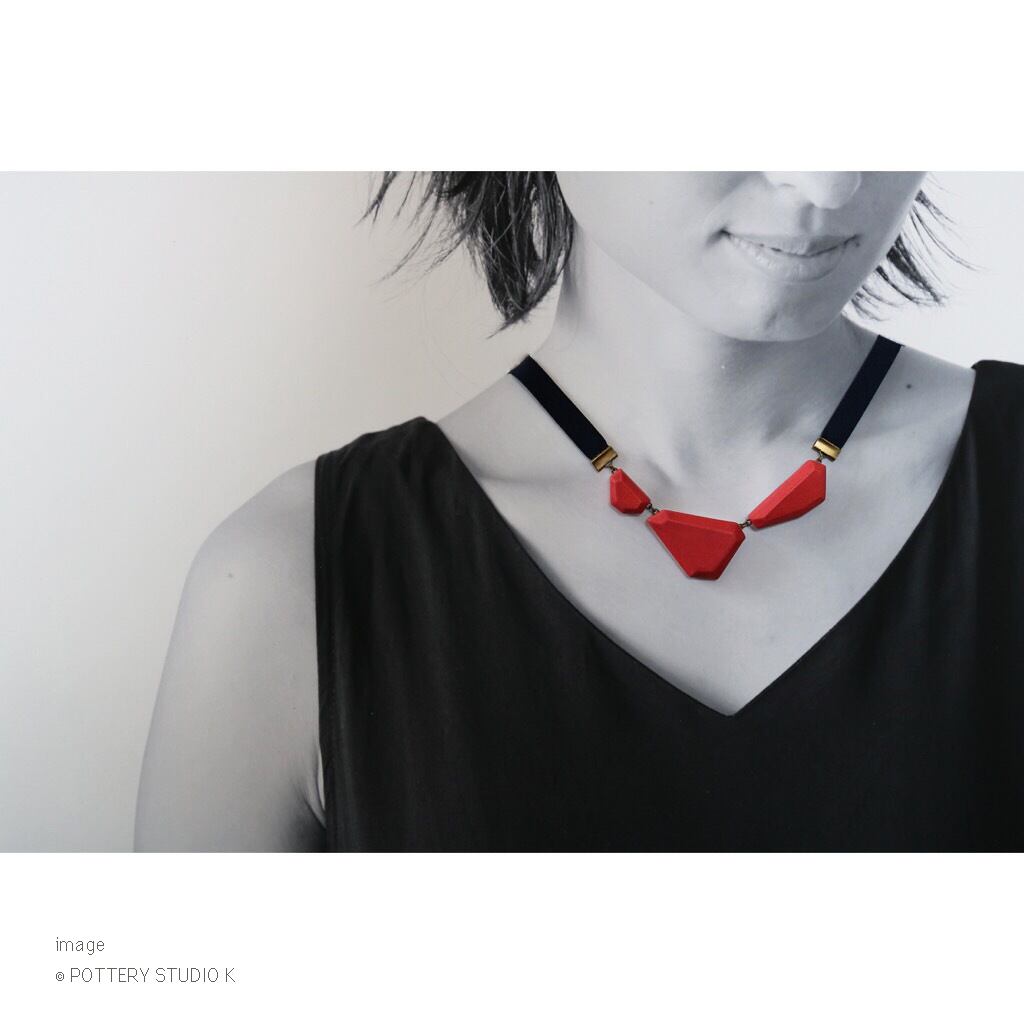 陶芸家 金子ひとみさんの kakera シリーズのネックレス。