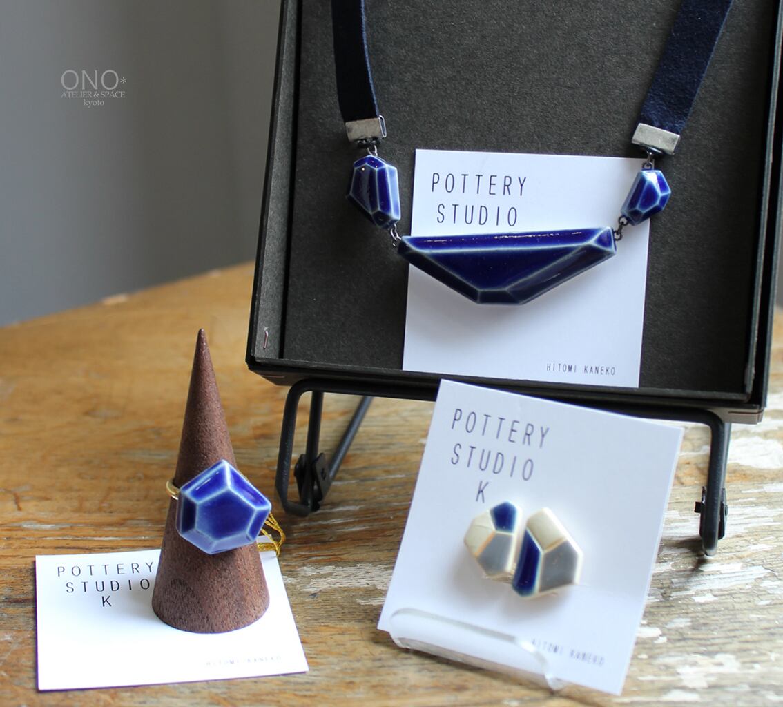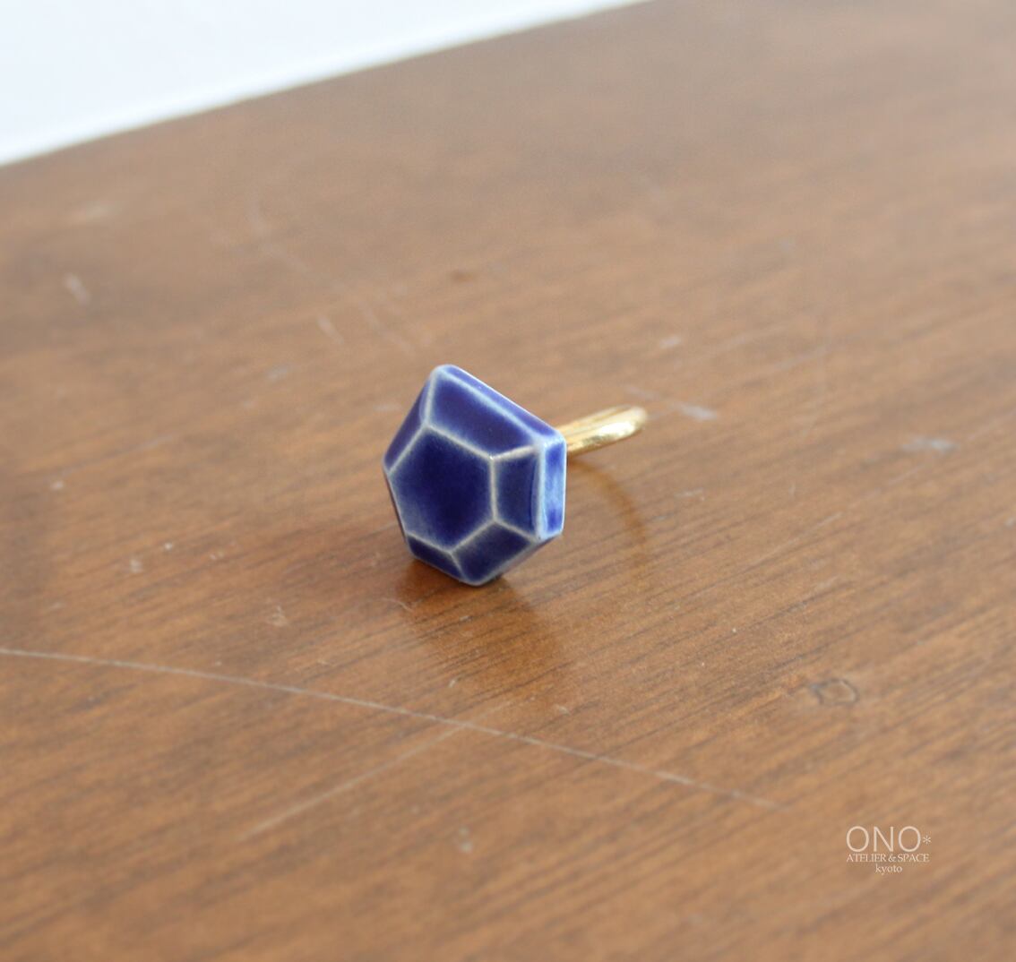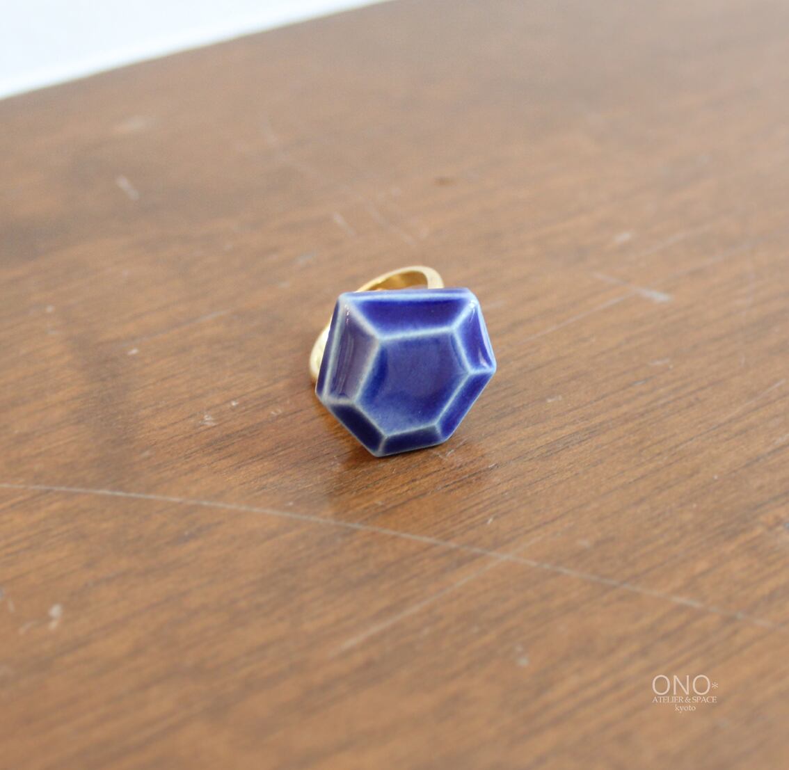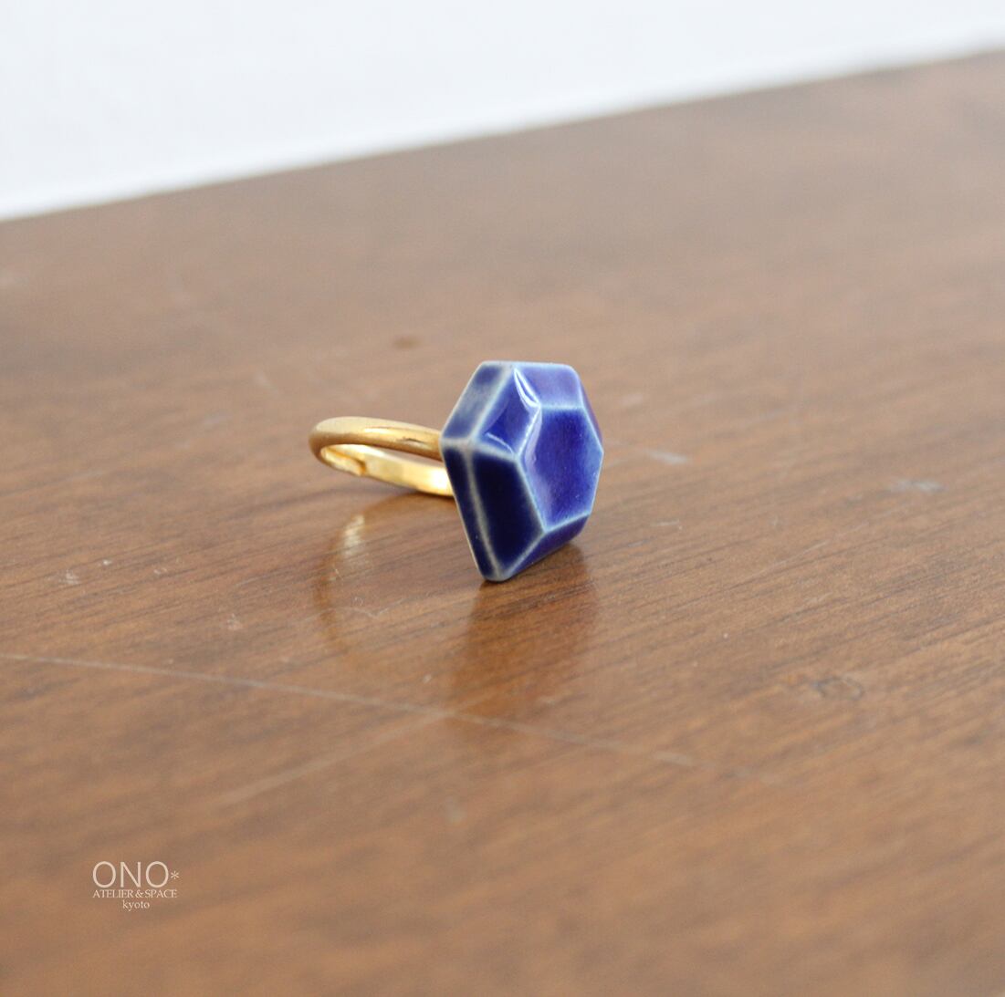 カットされたようなデザインの陶は釉薬のつやと色彩が魅力。