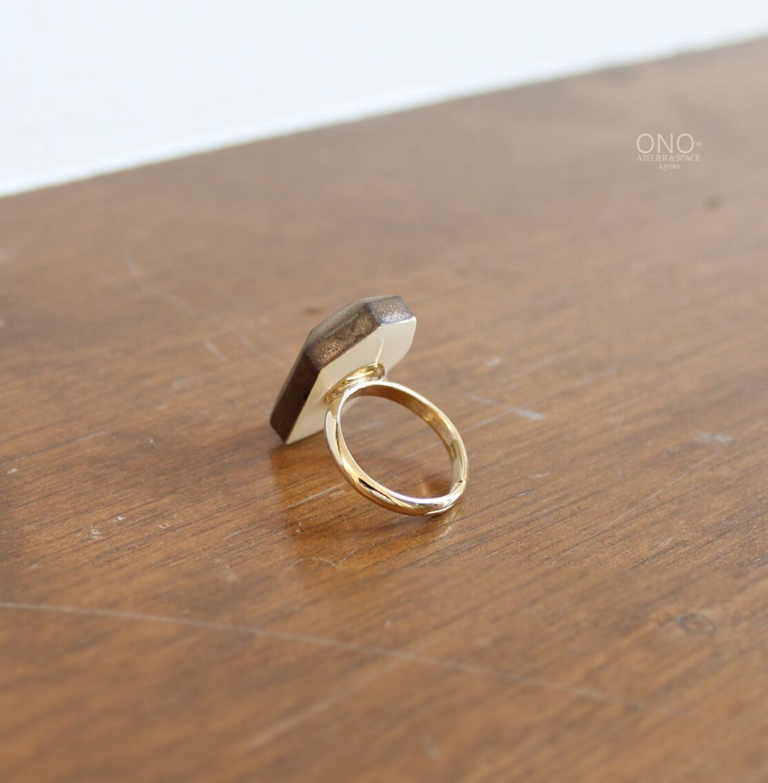 リングのサイズ 9号〜10号程度までのフリーサイズ。