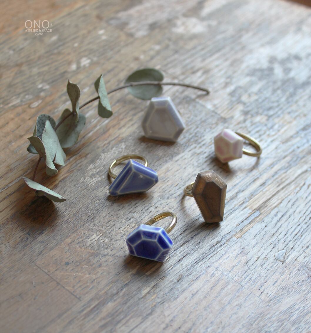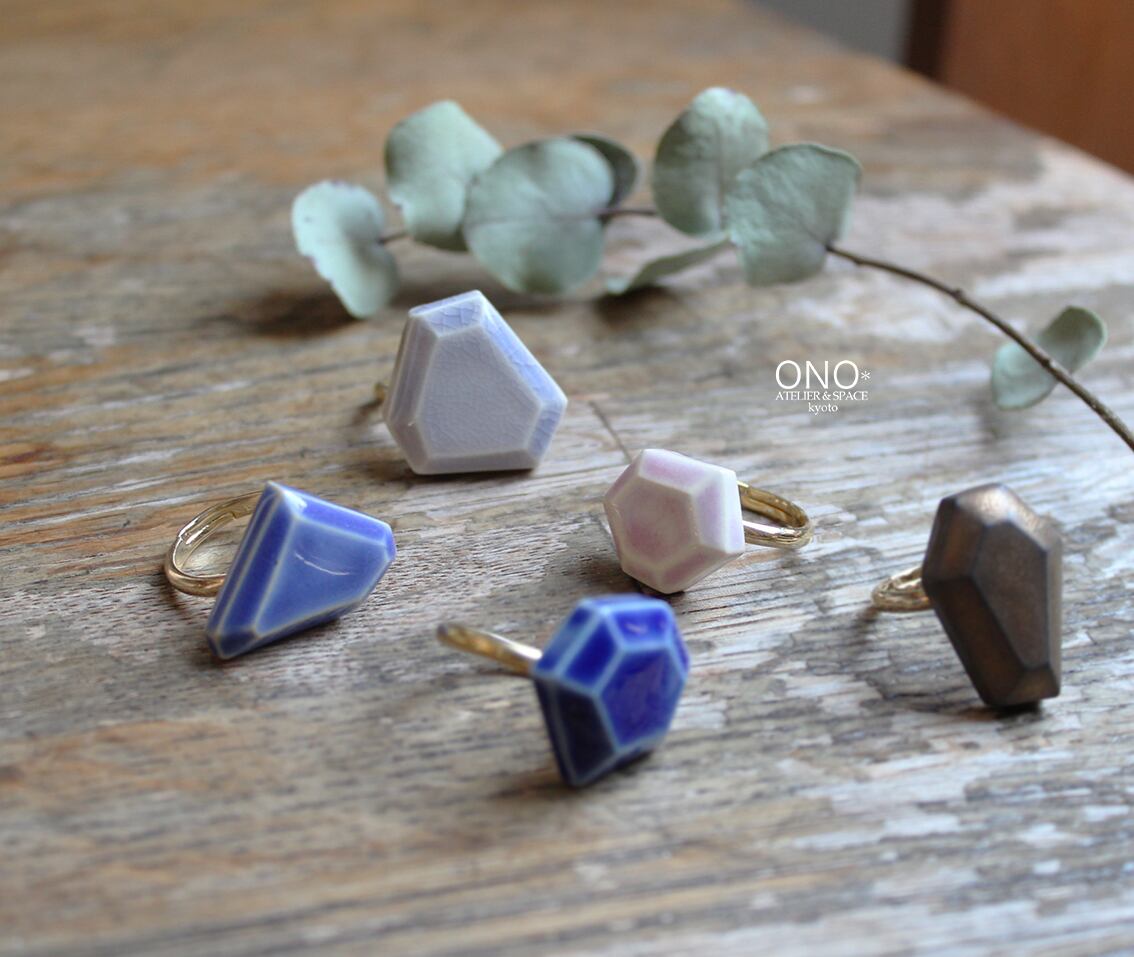 カットされたようなデザインの陶は釉薬のつやと色彩が魅力。