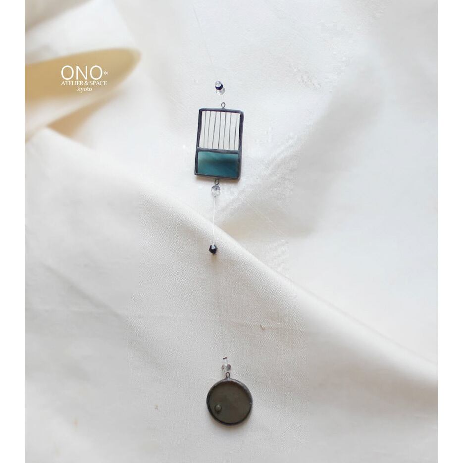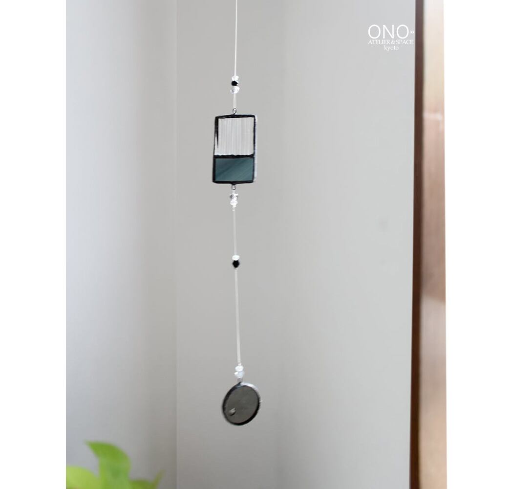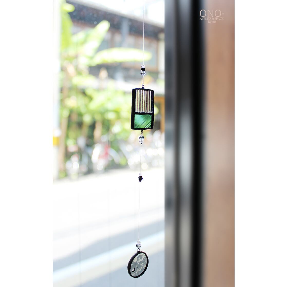 丸いモチーフと長方形の形が連なったステンドグラスのオーナメントは、