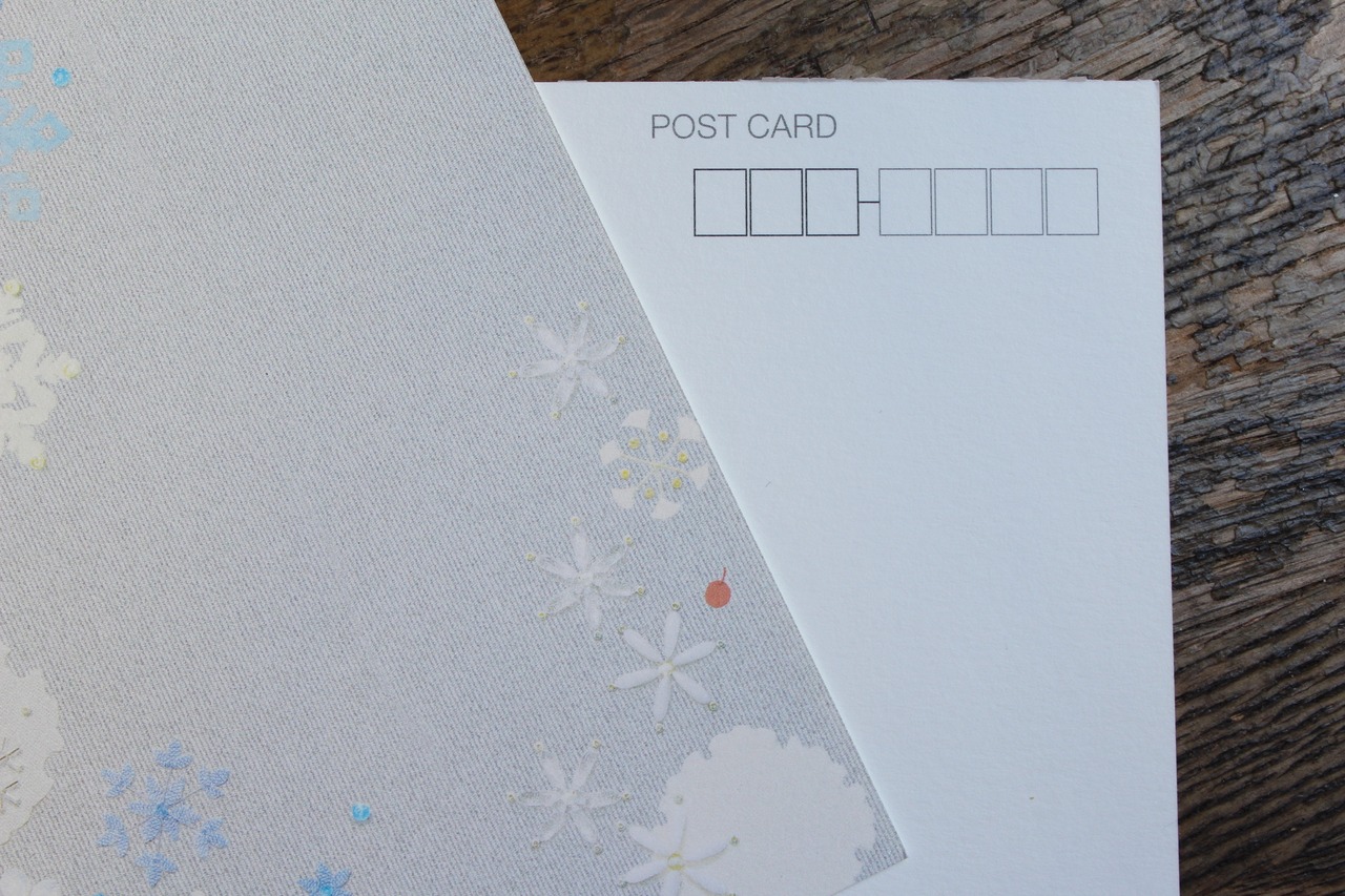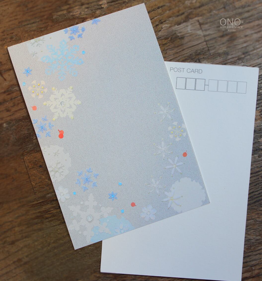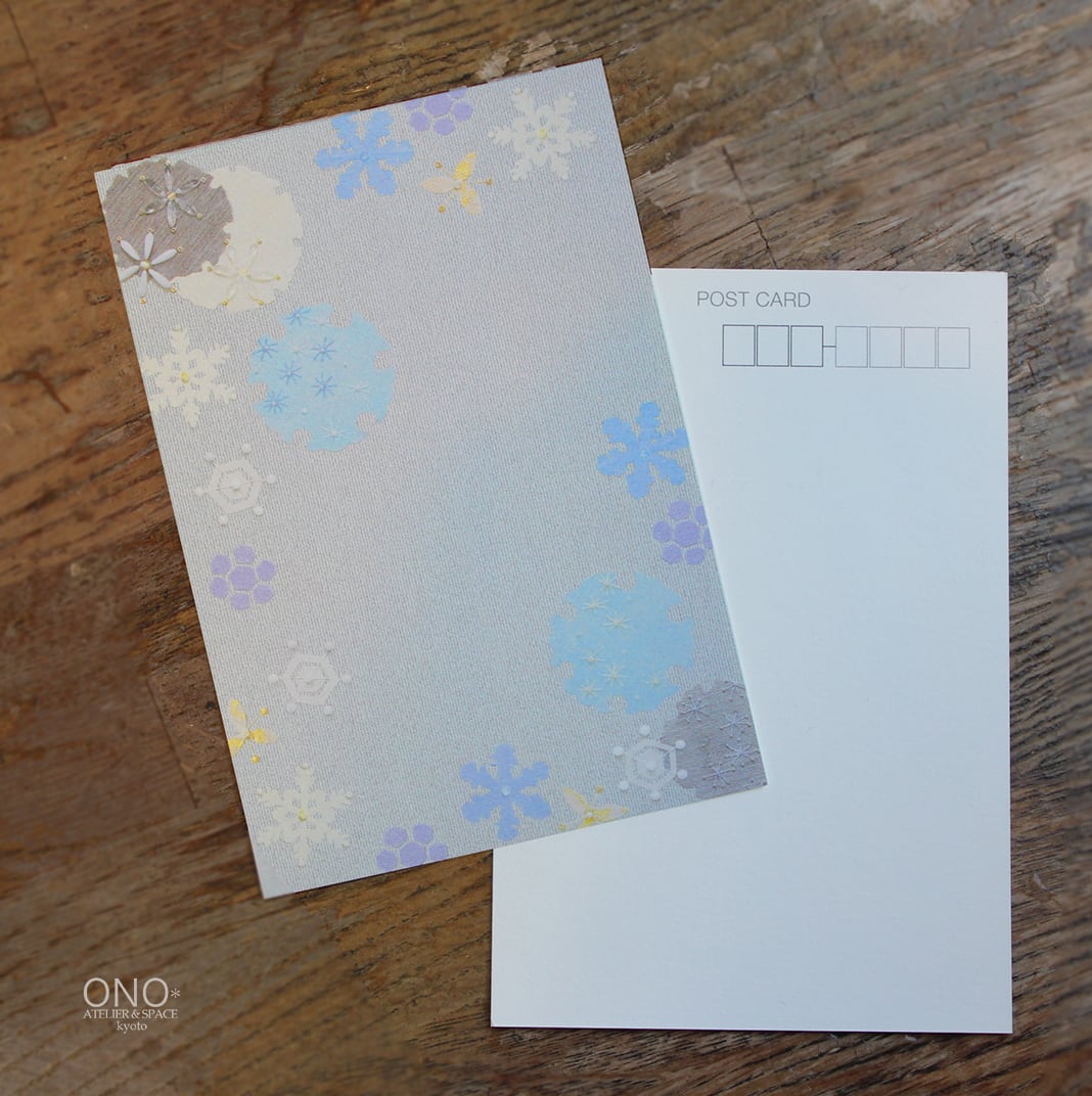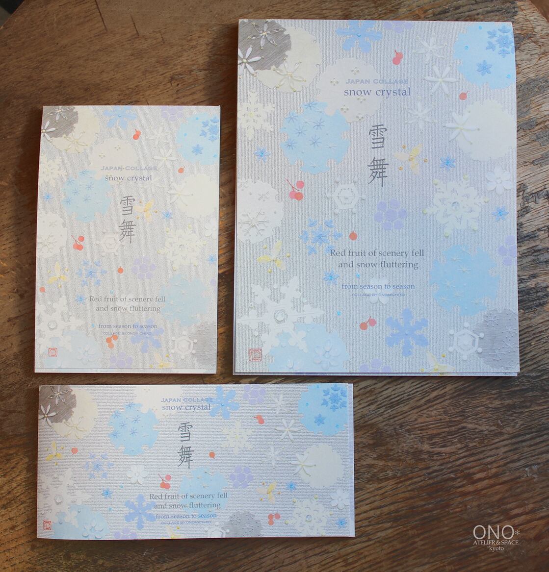 コラージュ作品『雪舞』をプリントした はがき箋です。