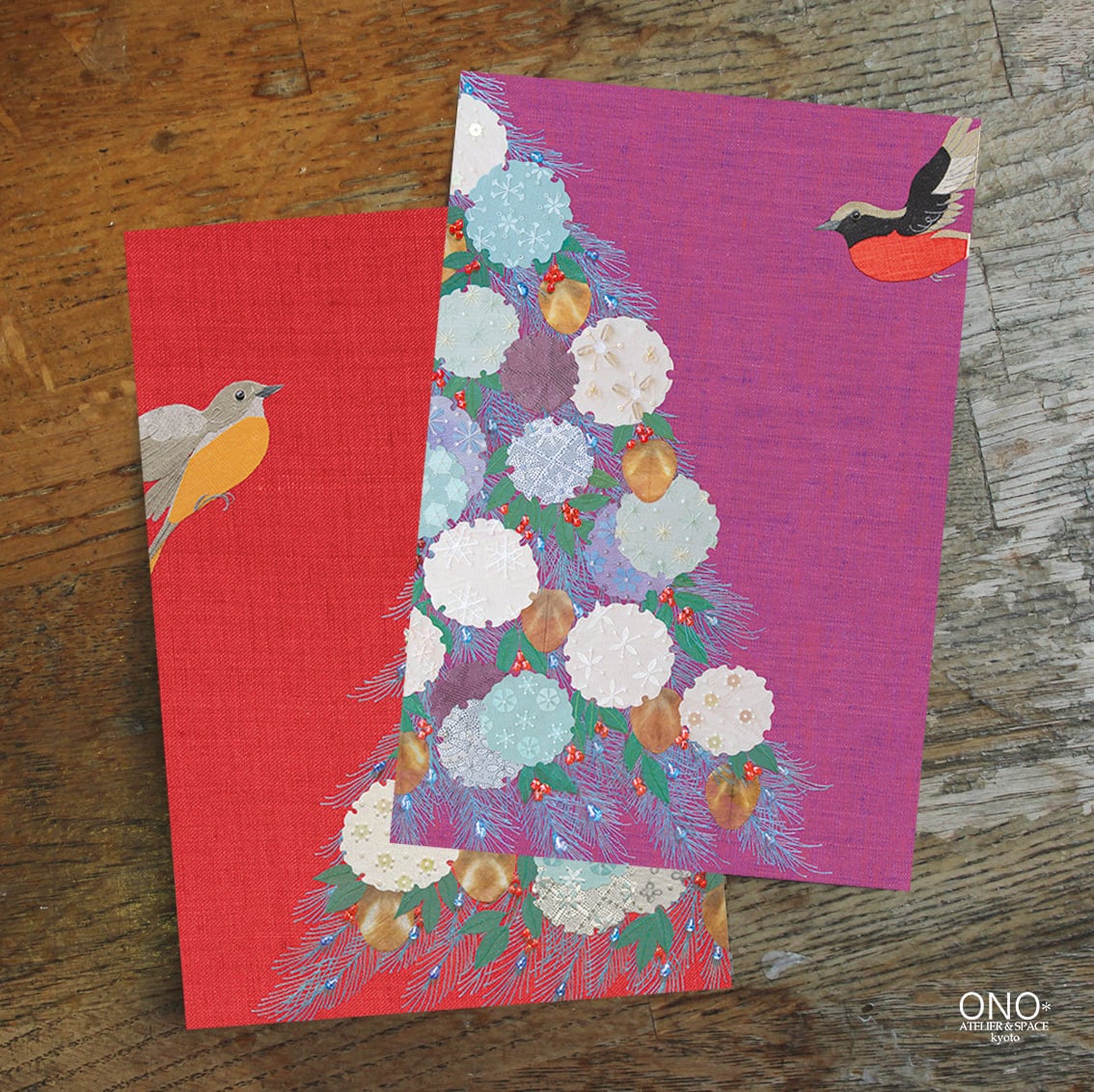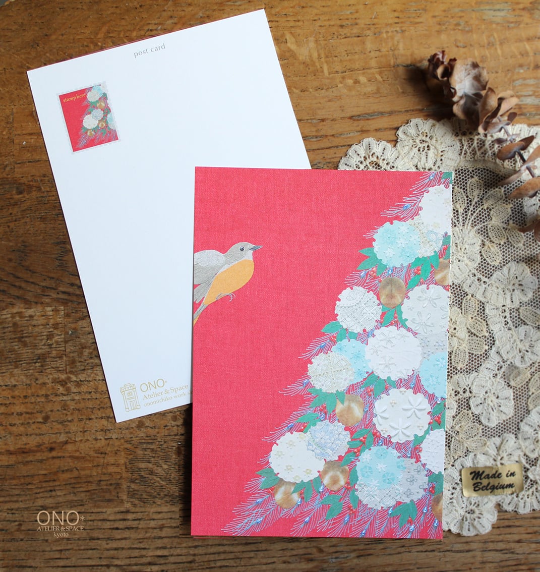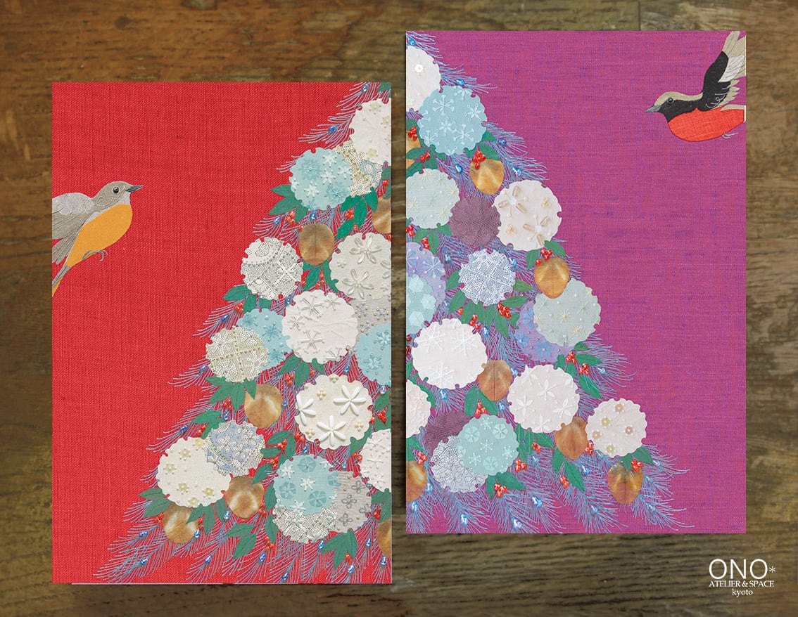 『松ツリー』深紅地 ジョウビタキ雌 1枚