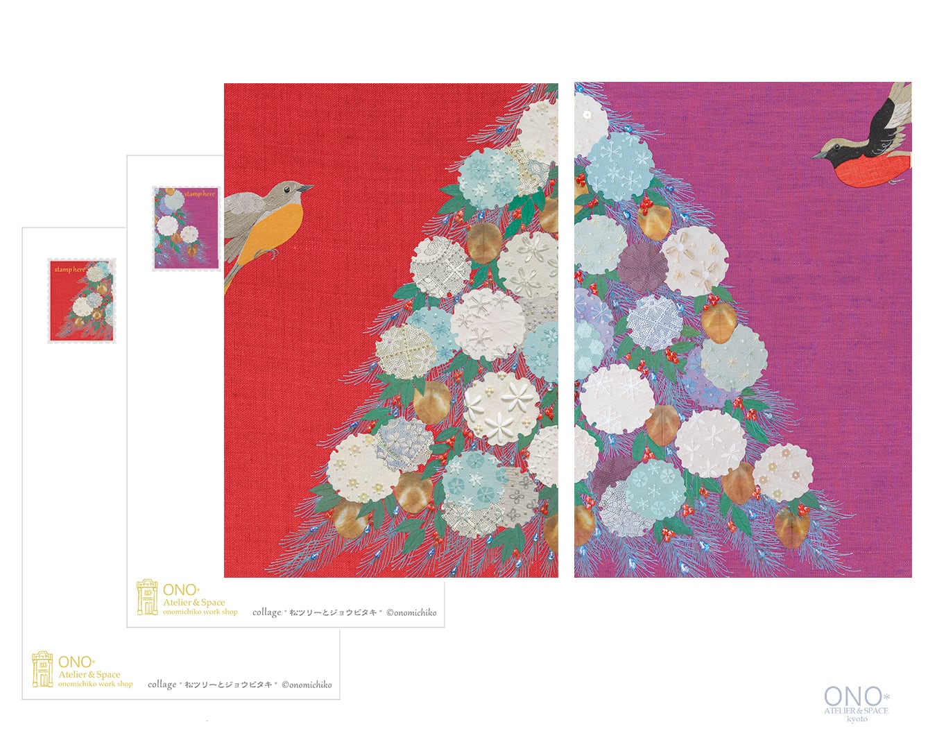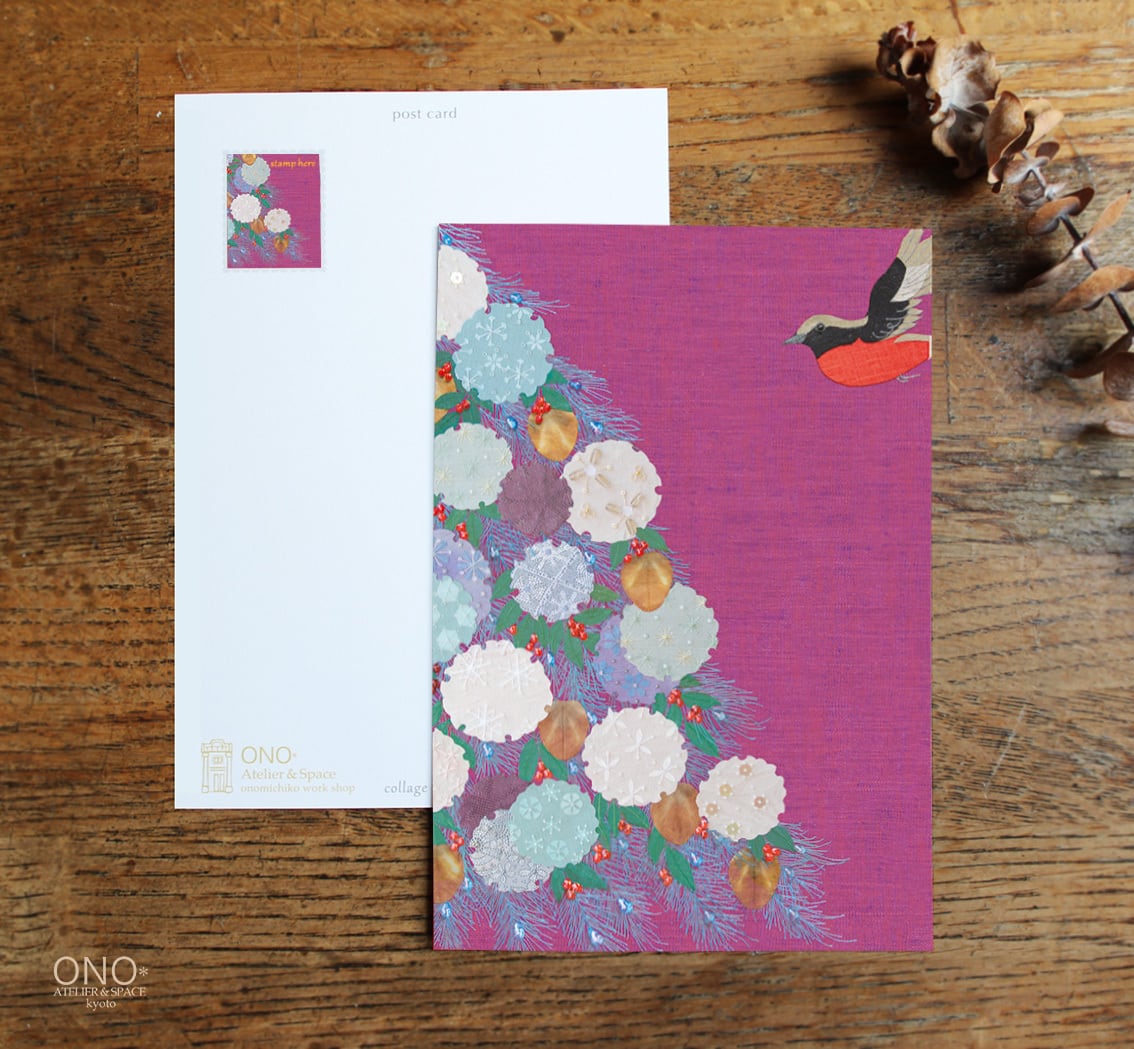 『松ツリー』紫地 ジョウビタキ雄 1枚