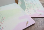 『枝垂れ桜に雀』をプリントした一筆箋です。