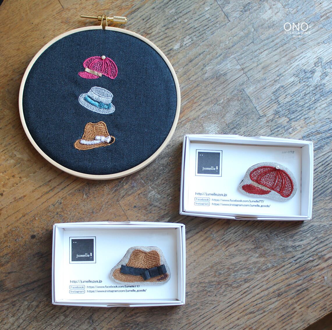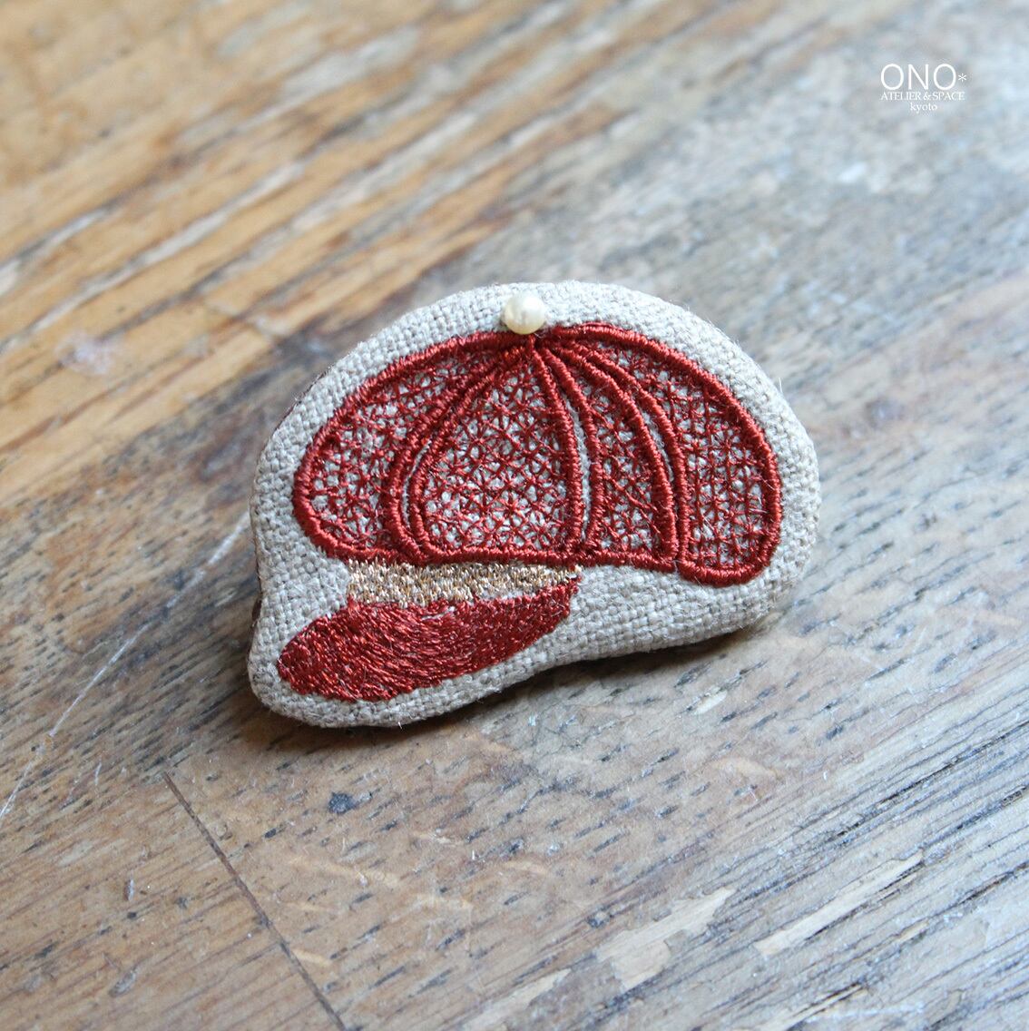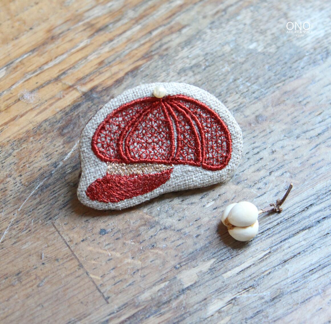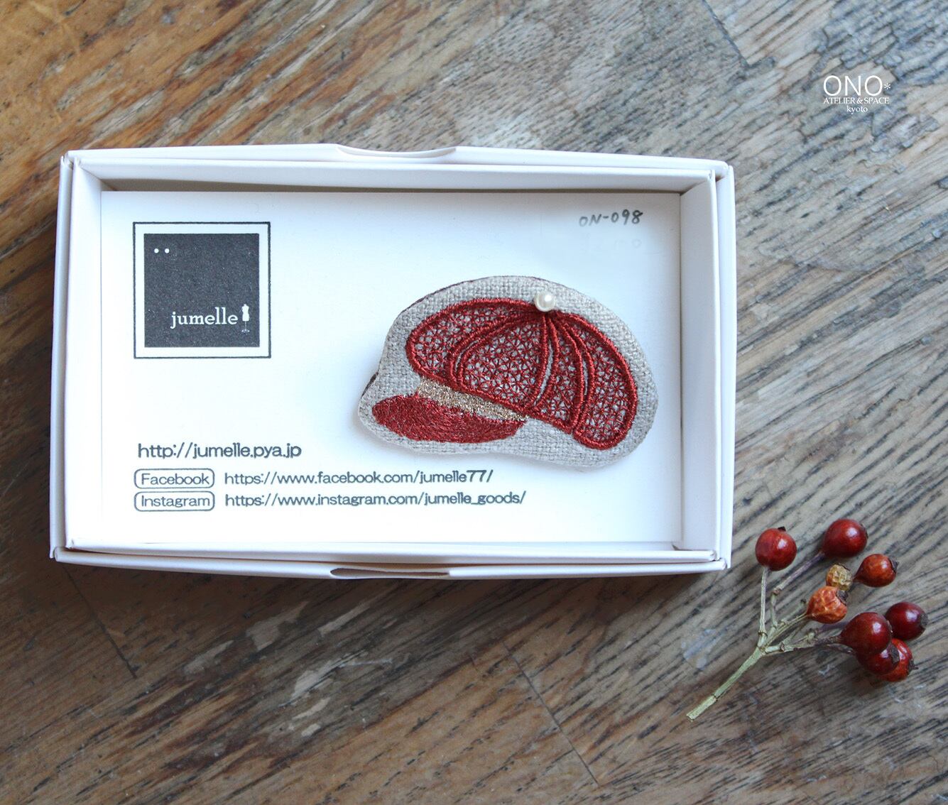 バッグや小物を作るハンドメイド作家 jumelle の刺繍ブローチ。