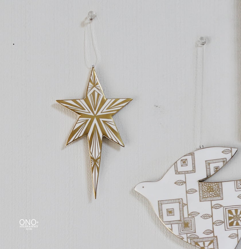 木や鳥、植物をモチーフに金彩や色絵で装飾したアクセサリーを制作