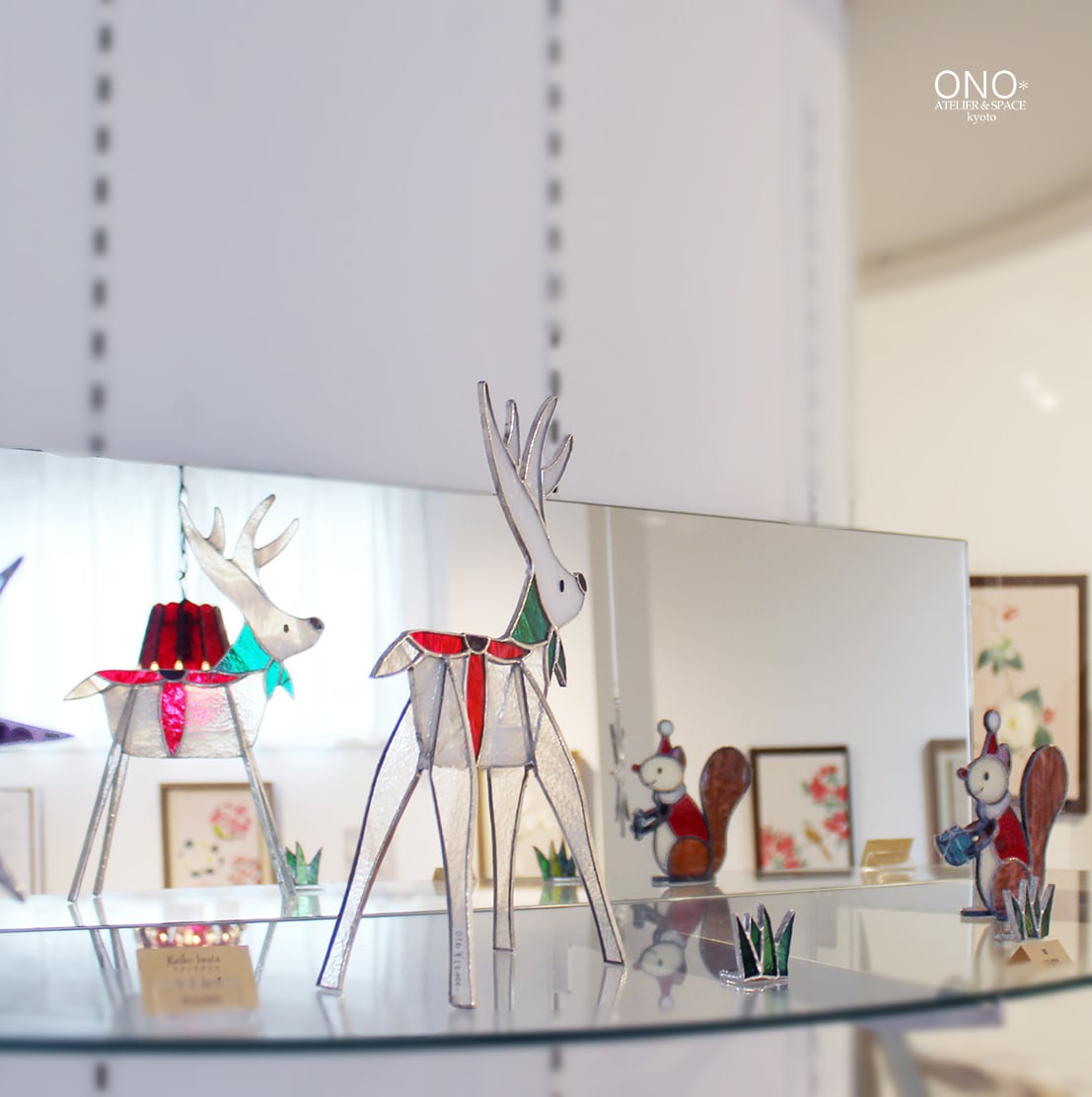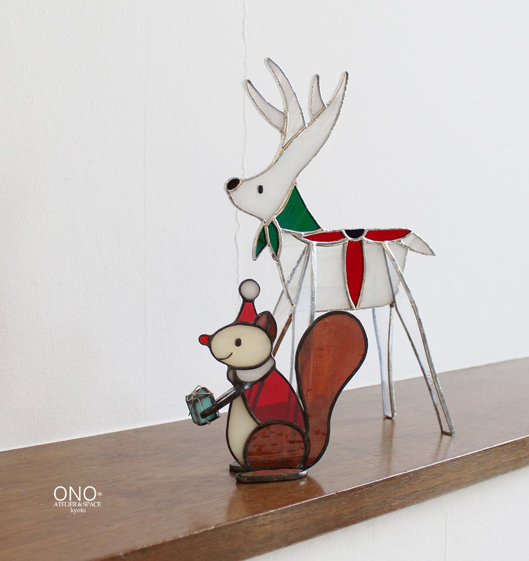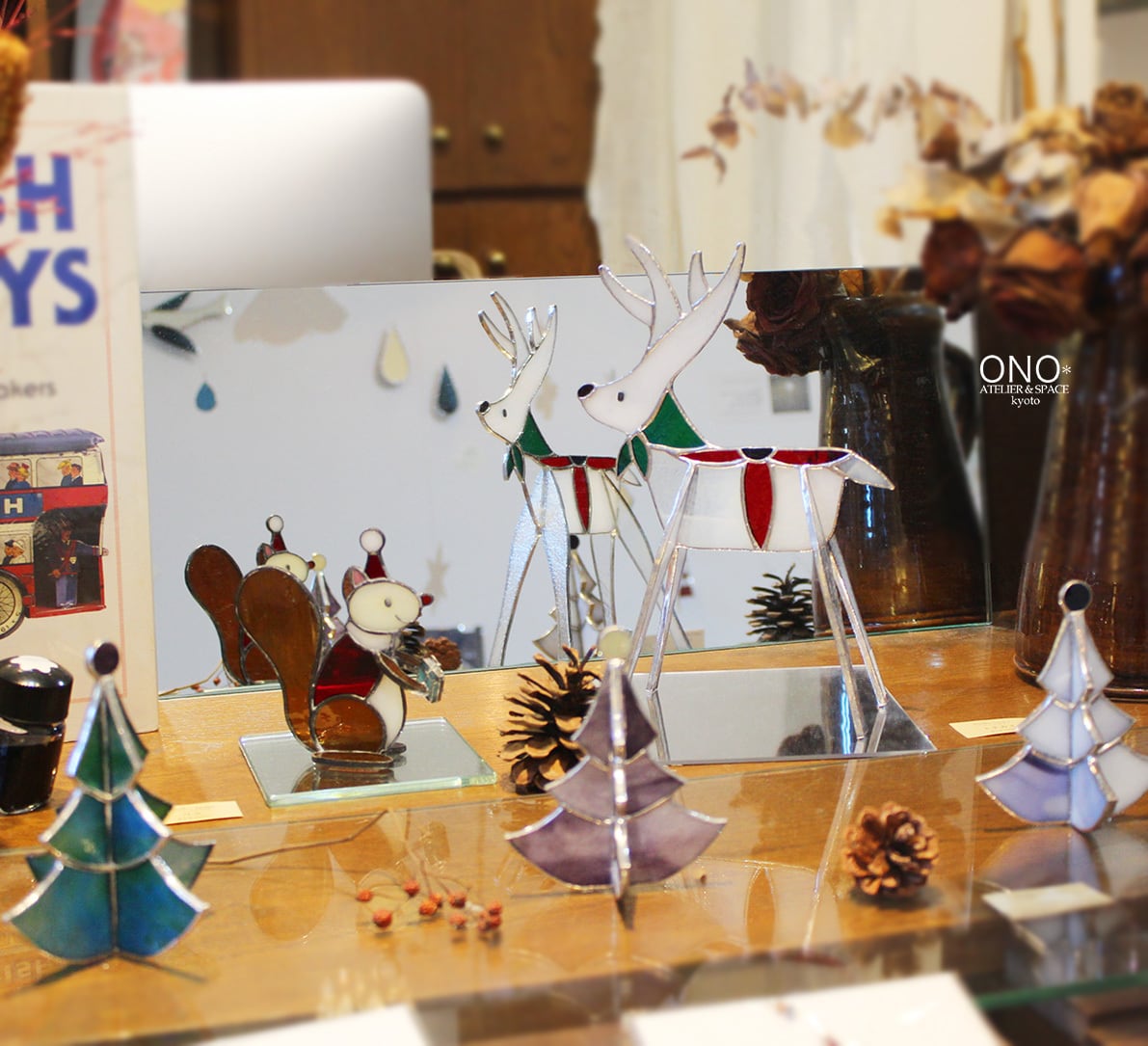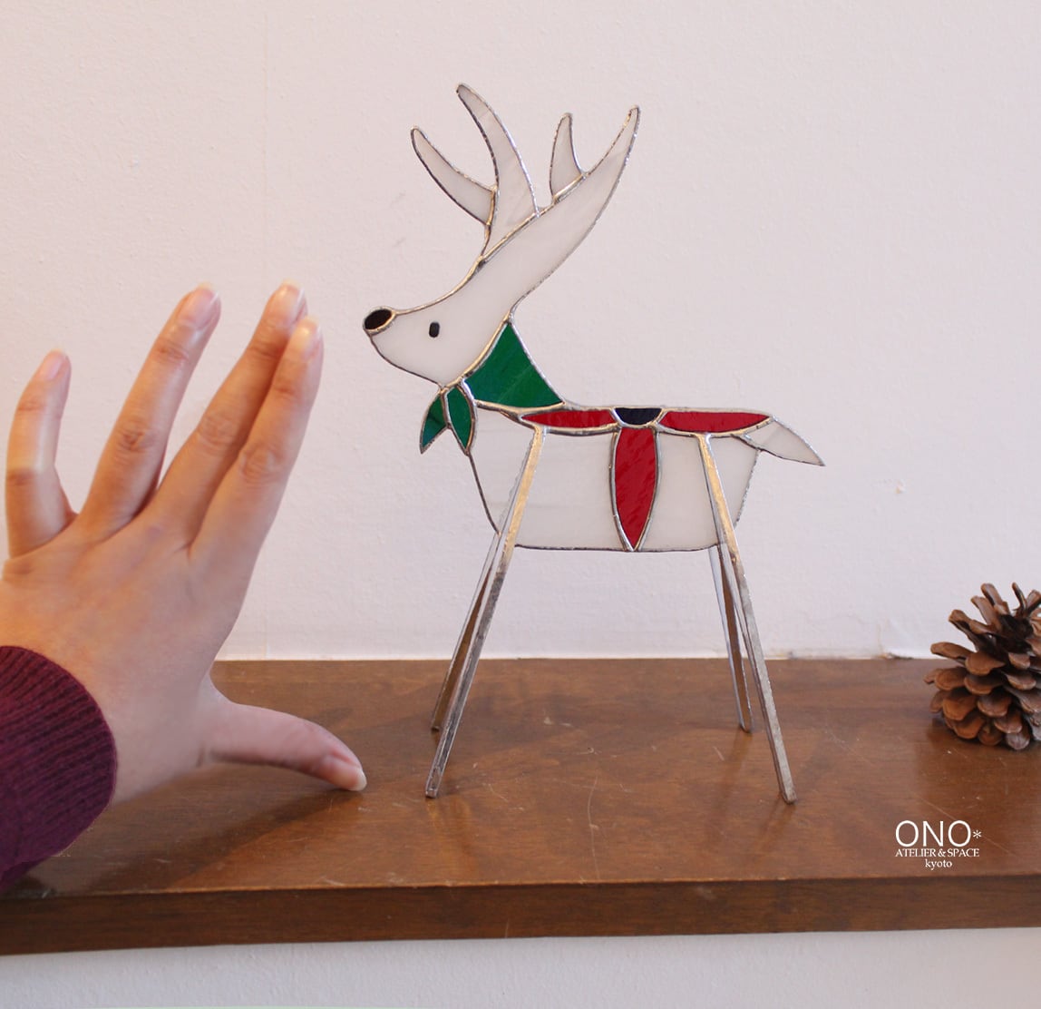 ステンドグラス作家 岩田けいこさんの トナカイの置き物。