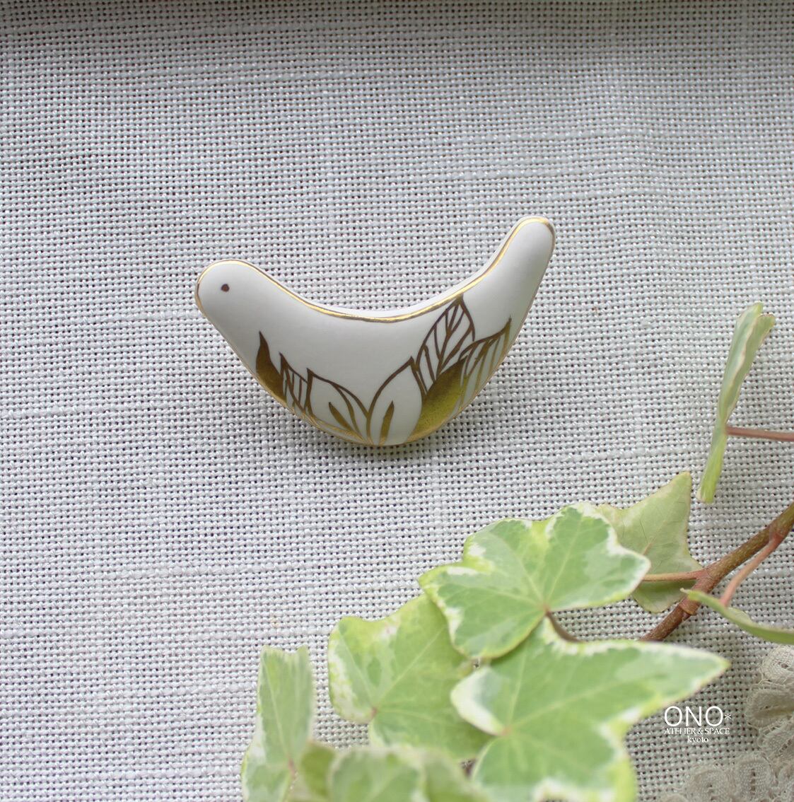 元橋みぎわ 鳥ブローチ 水芭蕉