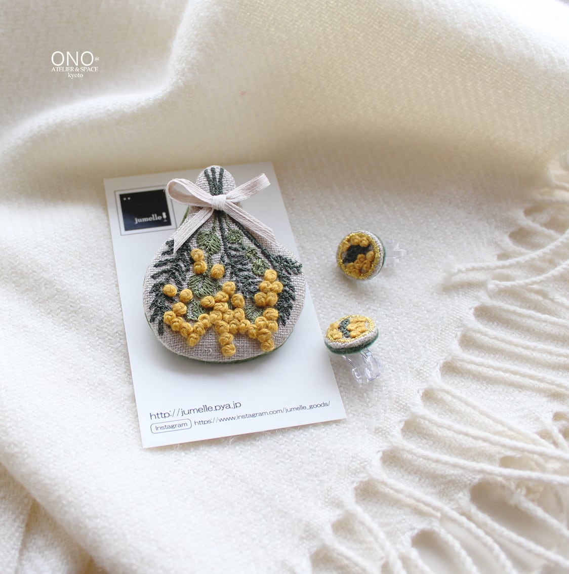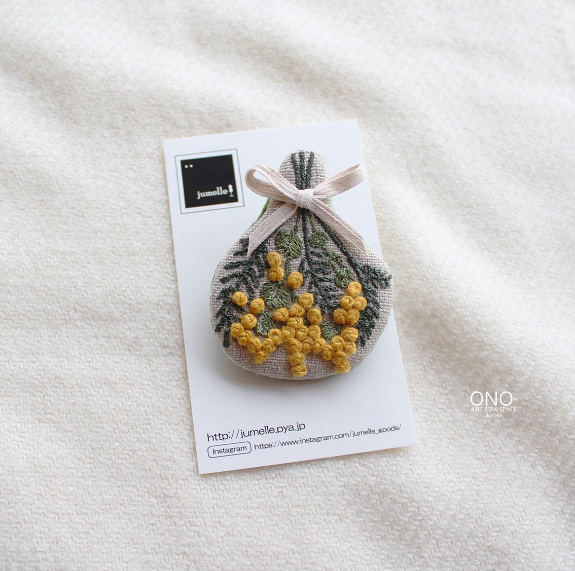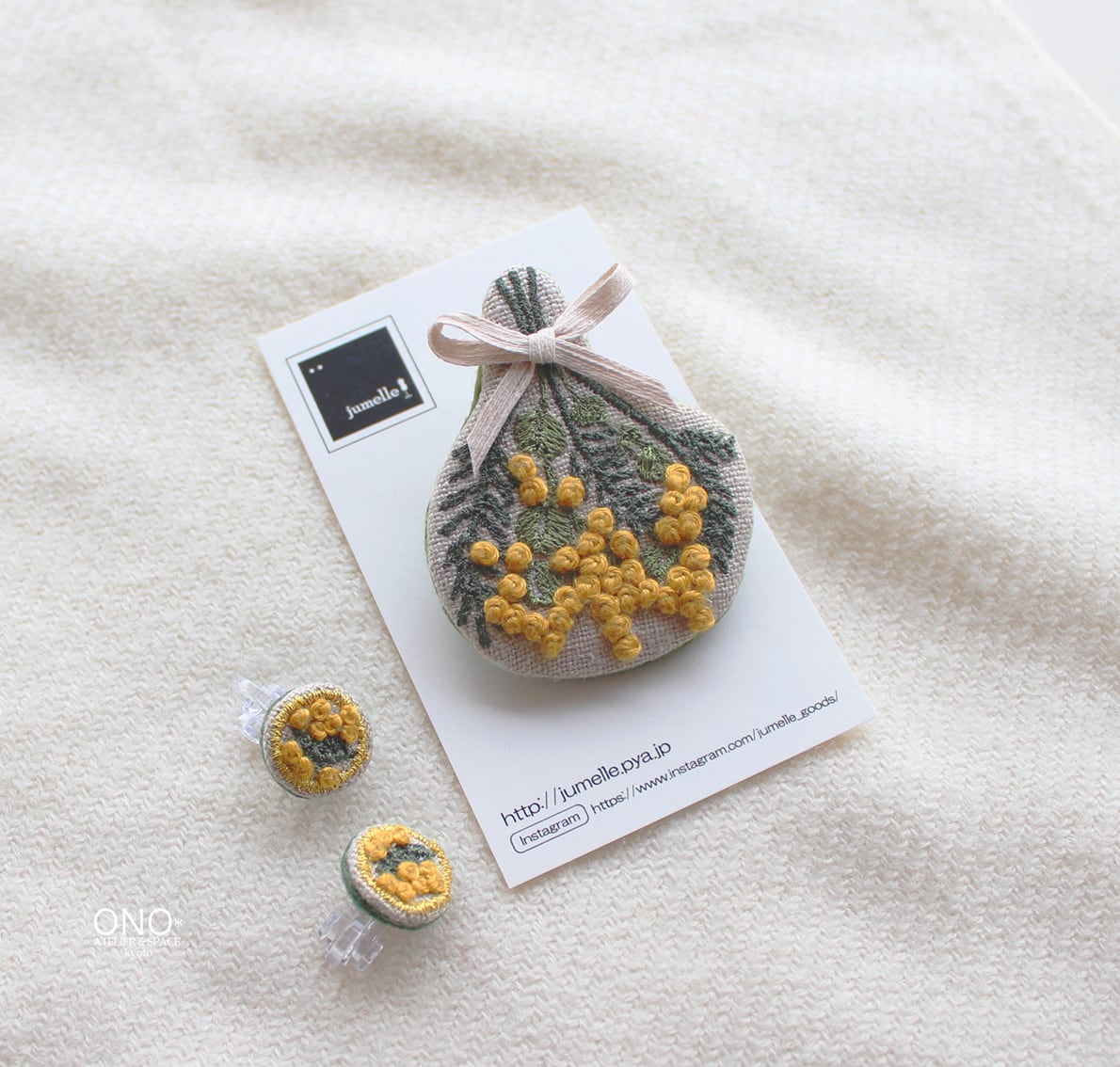 jumelle ミモザとユーカリ刺繍ブローチ(ナチュラル)