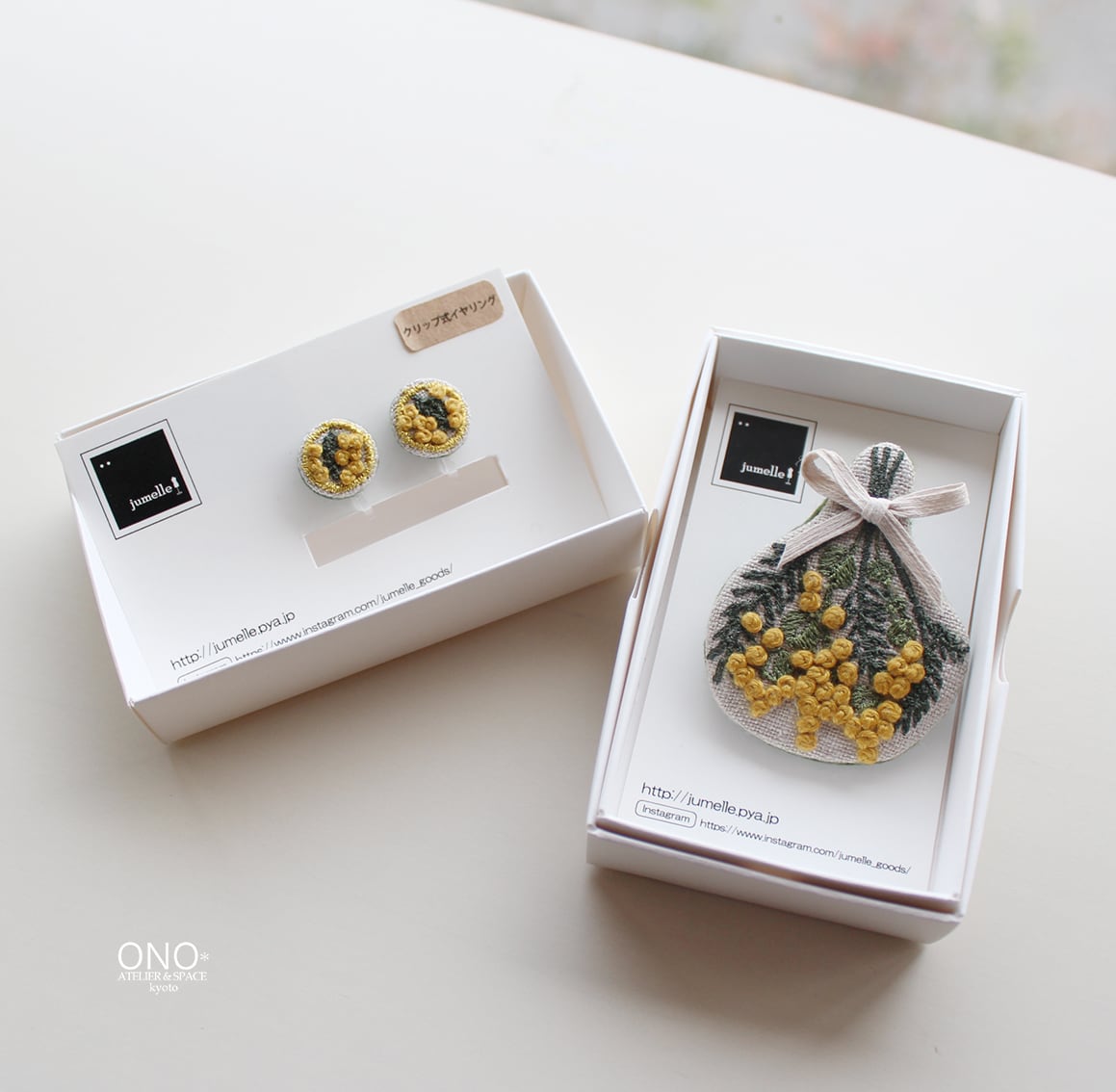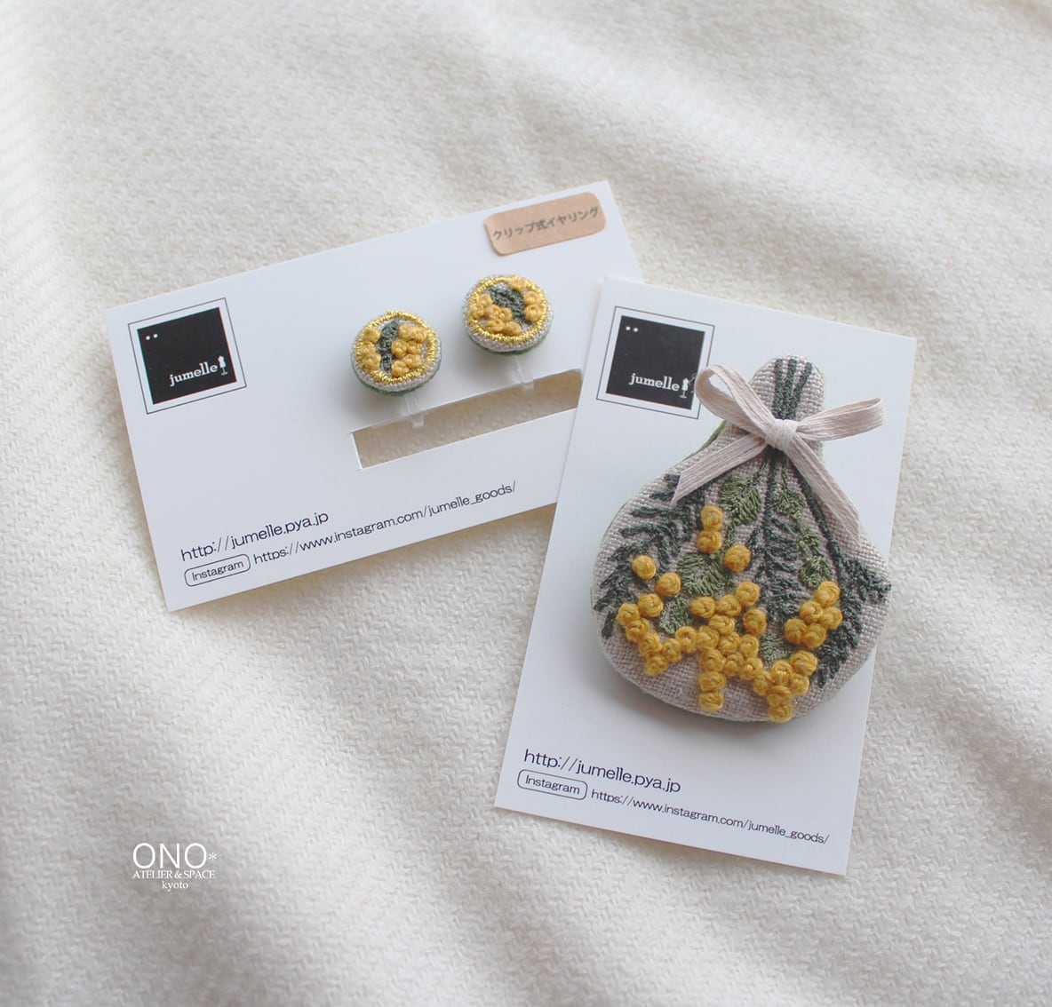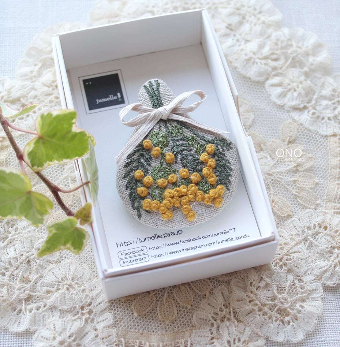 jumelle ミモザとユーカリ刺繍ブローチ(ナチュラル)