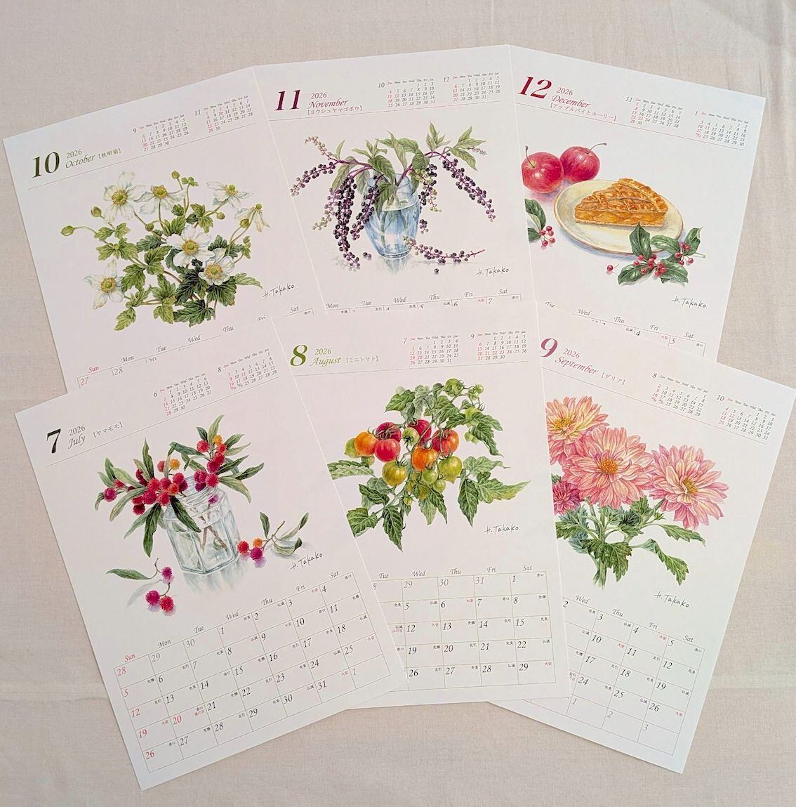 林 高子『2026年 ボタニカルアートカレンダー』
