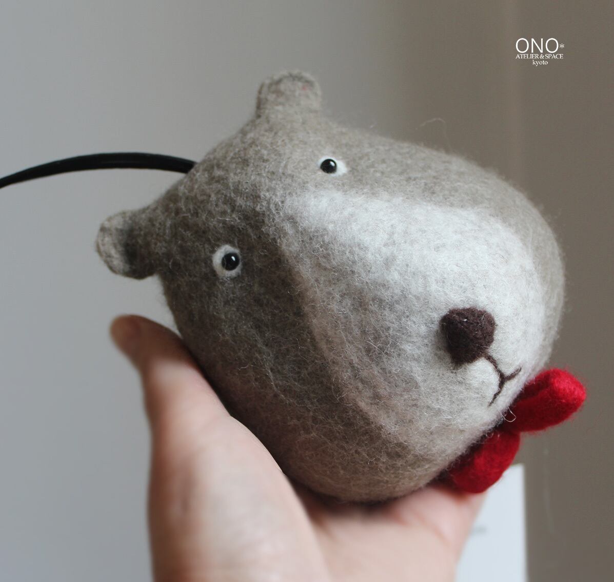 とぼけた表情と、赤いリボンがキュートで癒されます