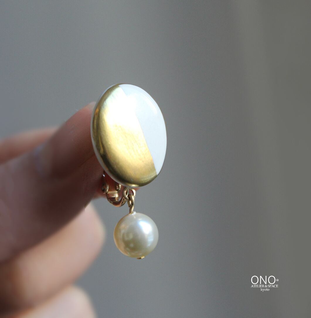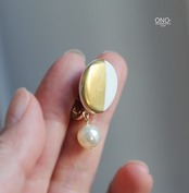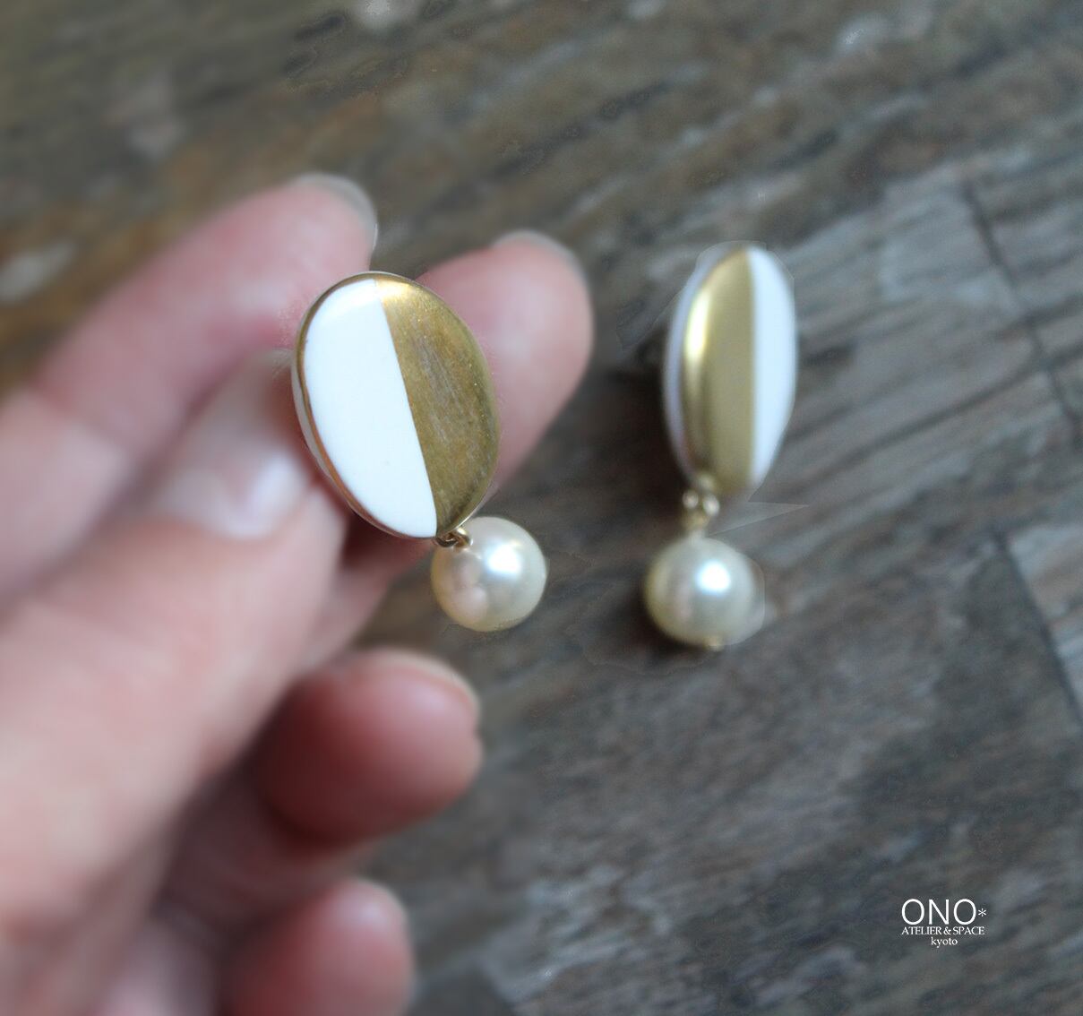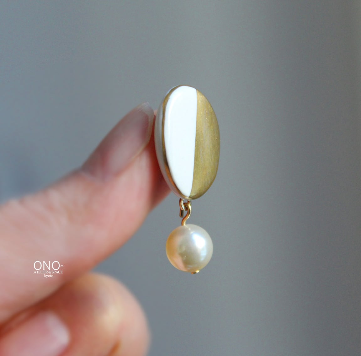 元橋みぎわ 陶イヤリング・ピアス 楕円型金彩&パール
