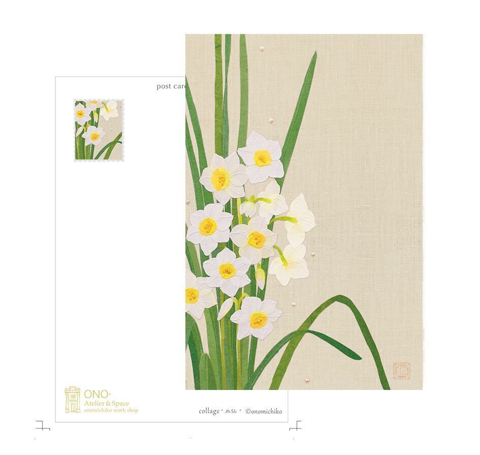 おのみちこ のコラージュ作品をプリントしたポストカード
