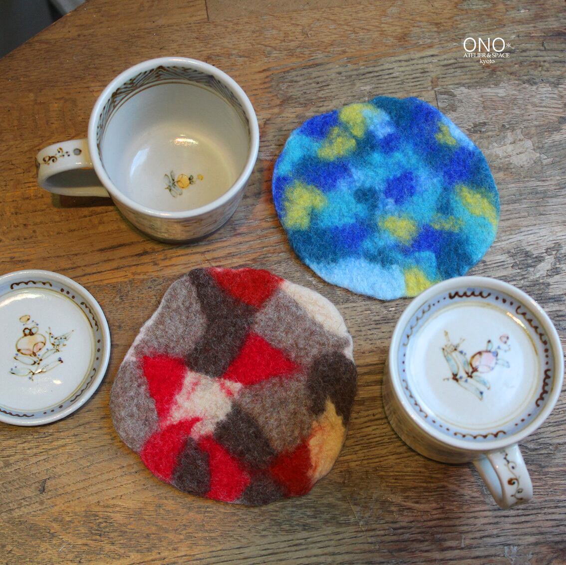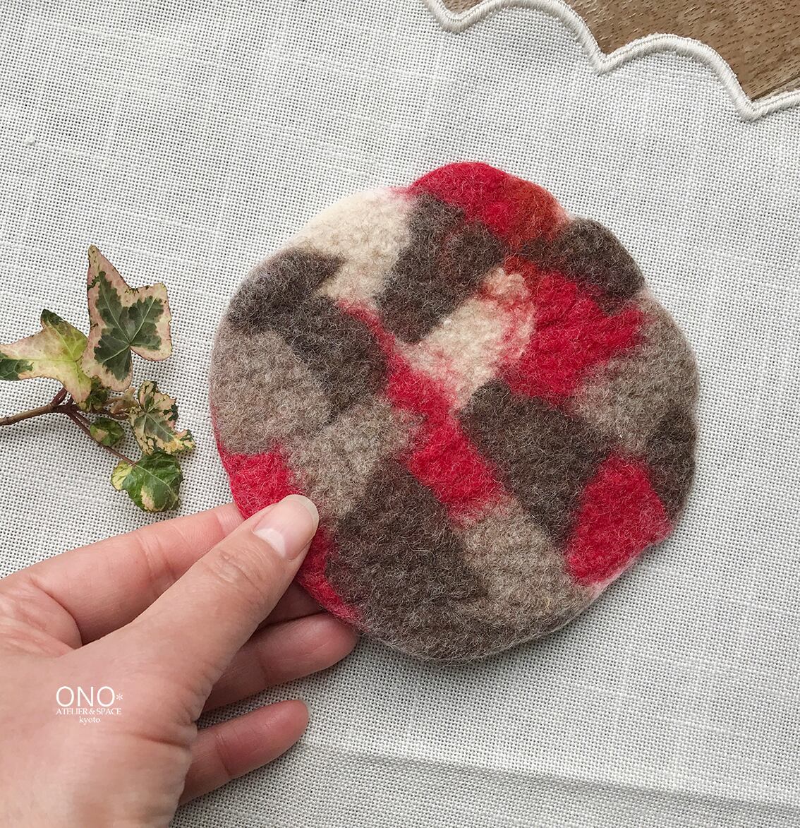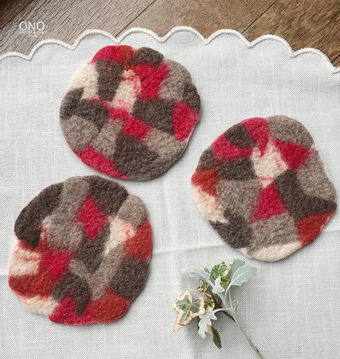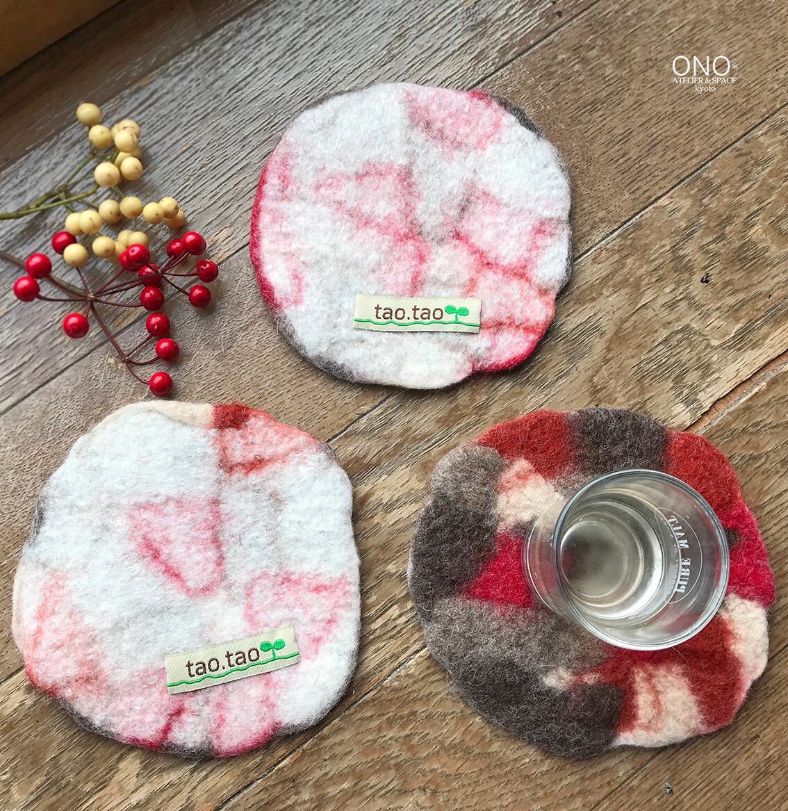 フエルトで小物を制作しているtao.tao のマーブル模様のコースターです。